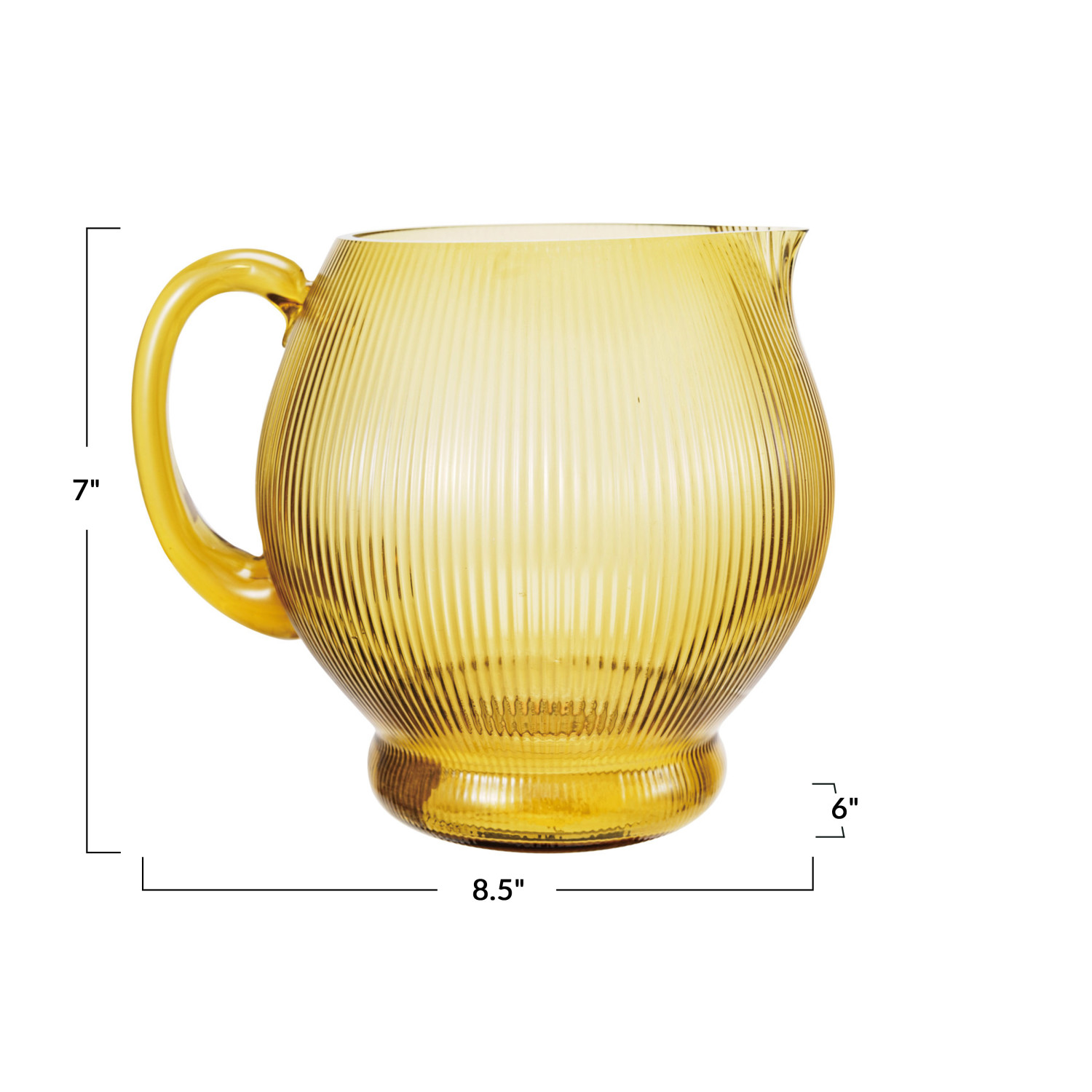 This ribbed glass pitcher in amber is a gorgeous and functional piece that will impress guests and family. It features a ribbed glass design that creates a textured and elegant look. The pitcher has a warm amber color that reflects the light beautifully and adds some warmth and coziness to the home. The pitcher has a round shape and a curved handle that make it easy to hold and pour. The pitcher can be used to serve water, juice, lemonade, or any other beverage of choice, or to display flowers, plants, or other decorative items. The pitcher is made of high-quality and durable glass that is easy to clean and care for. The pitcher has a capacity of 2.5 quarts. This amber ribbed glass pitcher is an excellent choice for self-care or gifting to someone special.