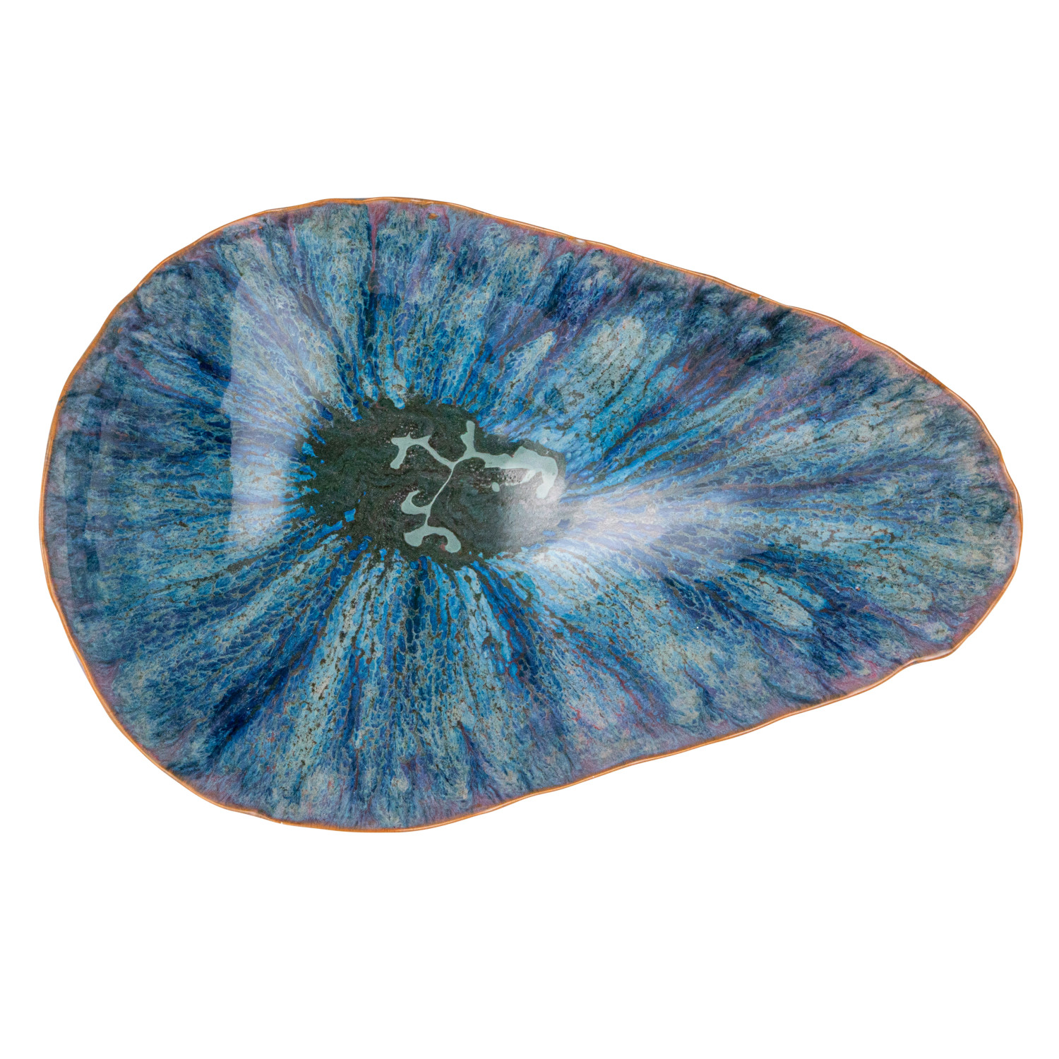 Catalog Name: 12-1/2"L x 8-1/2"W x 6"H Stoneware Organic Shaped Footed Bowl, Reactive Glaze, Blue (Each One Will Vary)