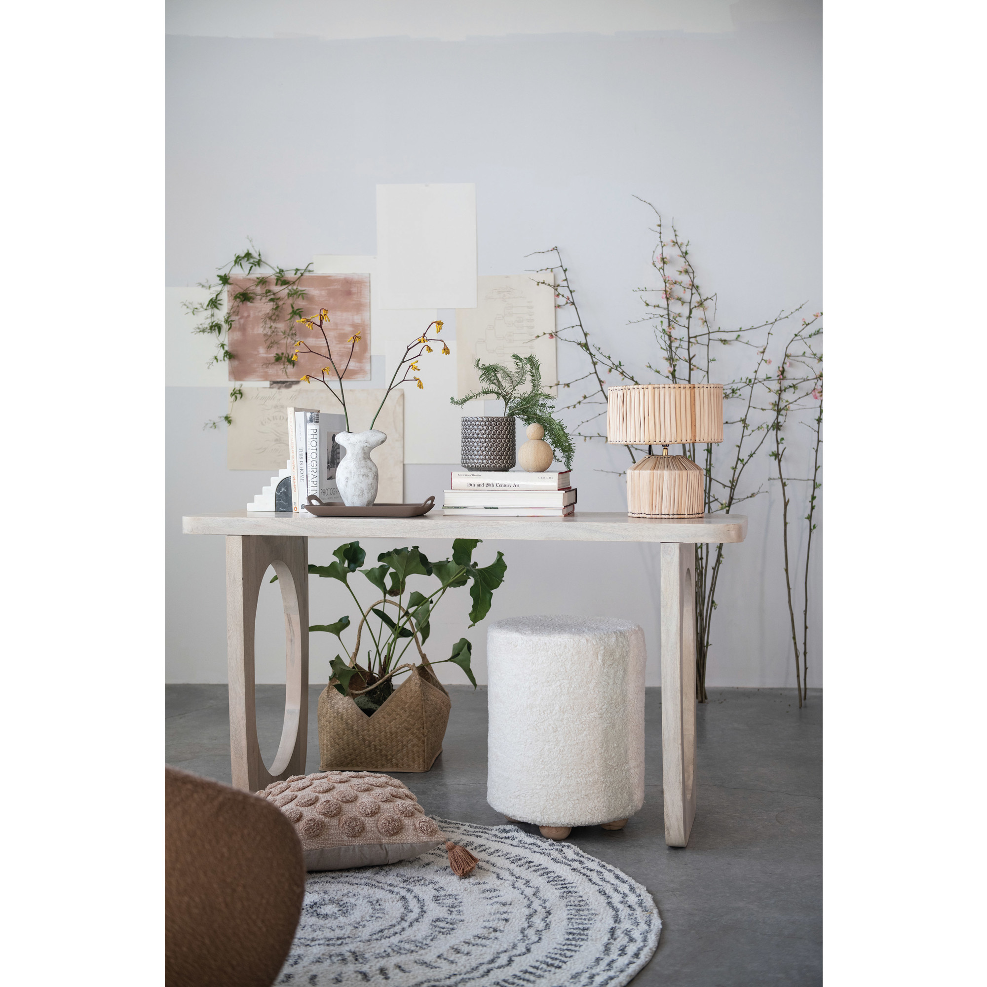 Catalog Name: 60"W x 19"D x 33"H Mango Wood Console Table, Bleached, KD, Truck Ship