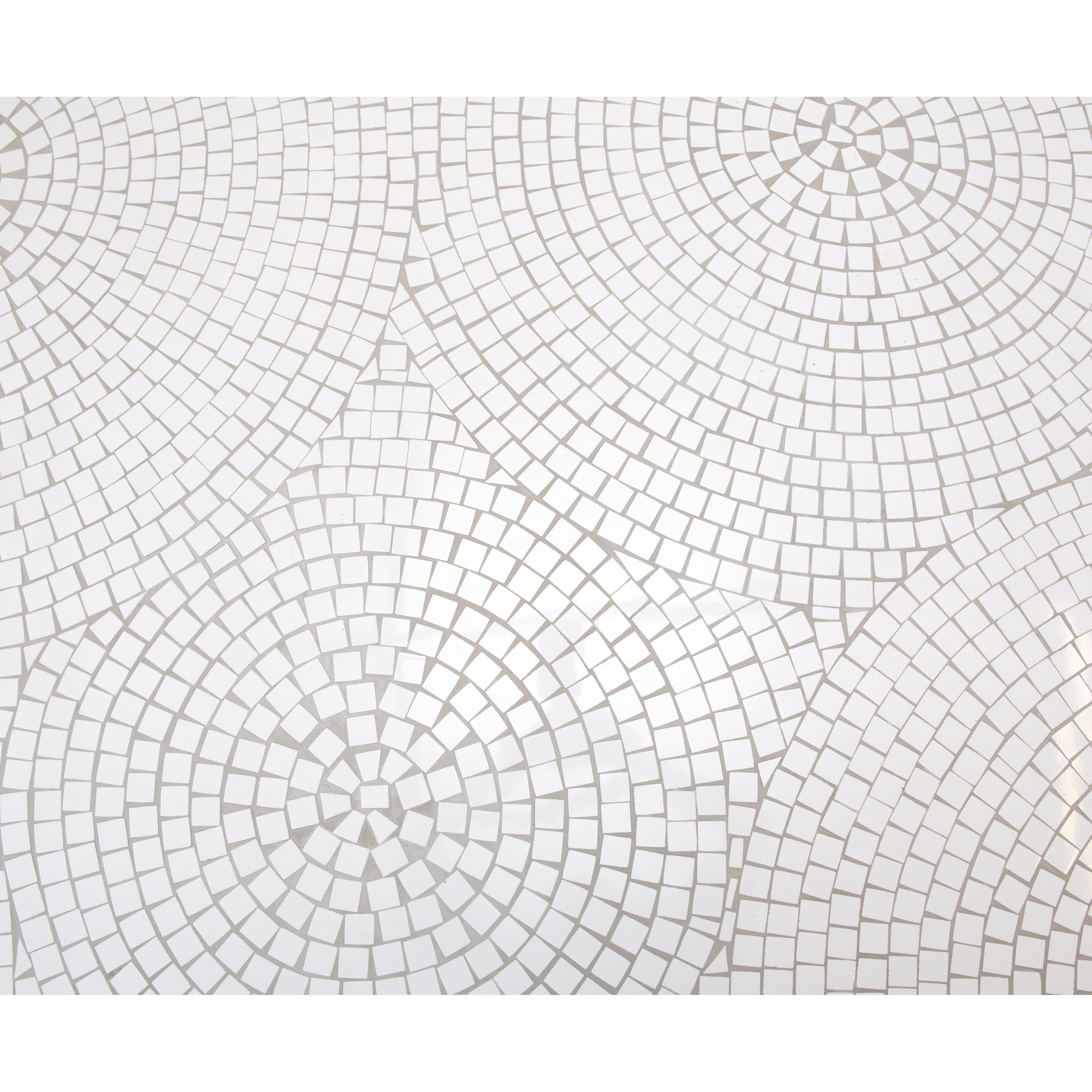 This sleek metal accent table features an intricately pieced mosaic top. Black metal table with white mosaic top. Add a touch of functional style to any living room or covered patio with this beautiful table. Made from iron and ceramic glazed tile.