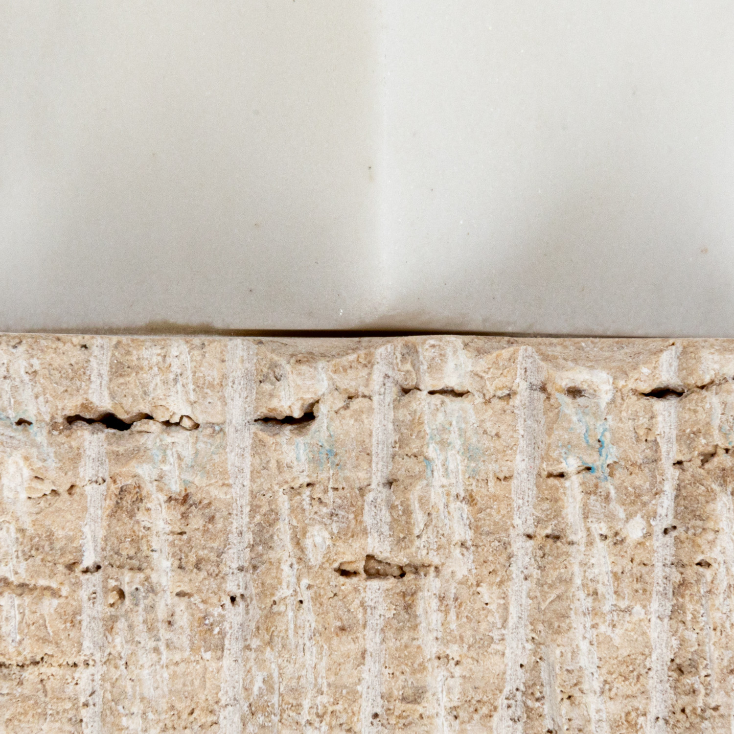 Catalog Name: 3-1/4" Square x 2-1/2"H Marble & Travertine 2-Sided Tealight/Taper Holder, White & Natural