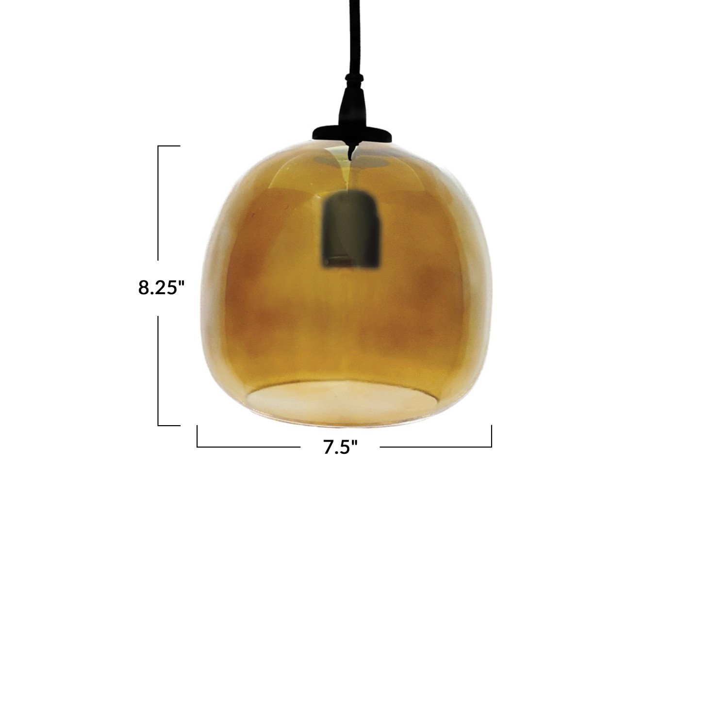 Catalog Name: 7-1/2" Round x 8-1/4"H Glass & Metal Pendant Lamp, 5-1/2' Fabric Cord, Amber Color (Hardwire Only)