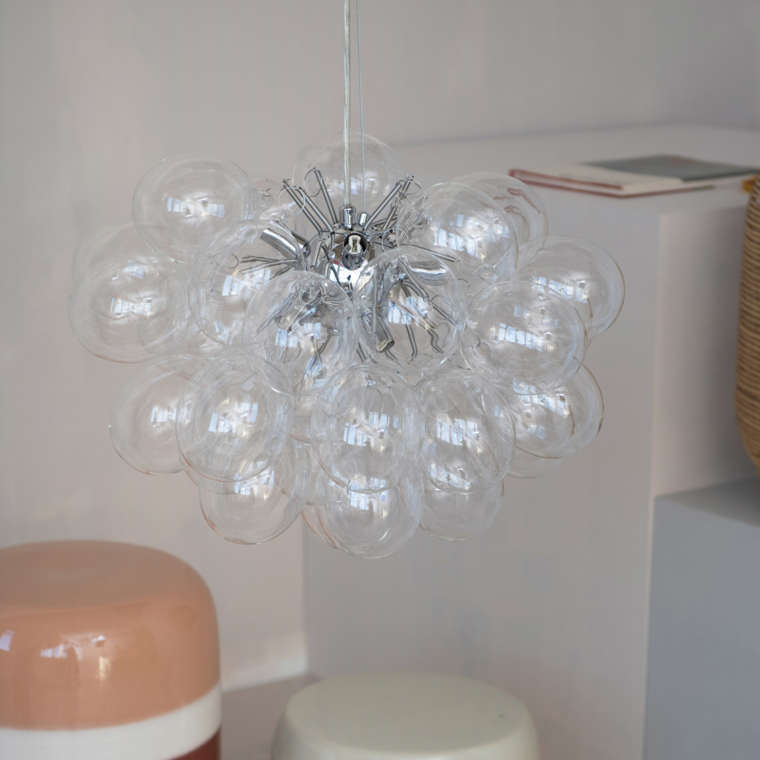 Catalog Name: 19-1/2" Round x 19-1/2"H Glass Bulb & Metal Pendant Lamp w/ 8 Lights, 6' Cord, KD (Hardwire Only)