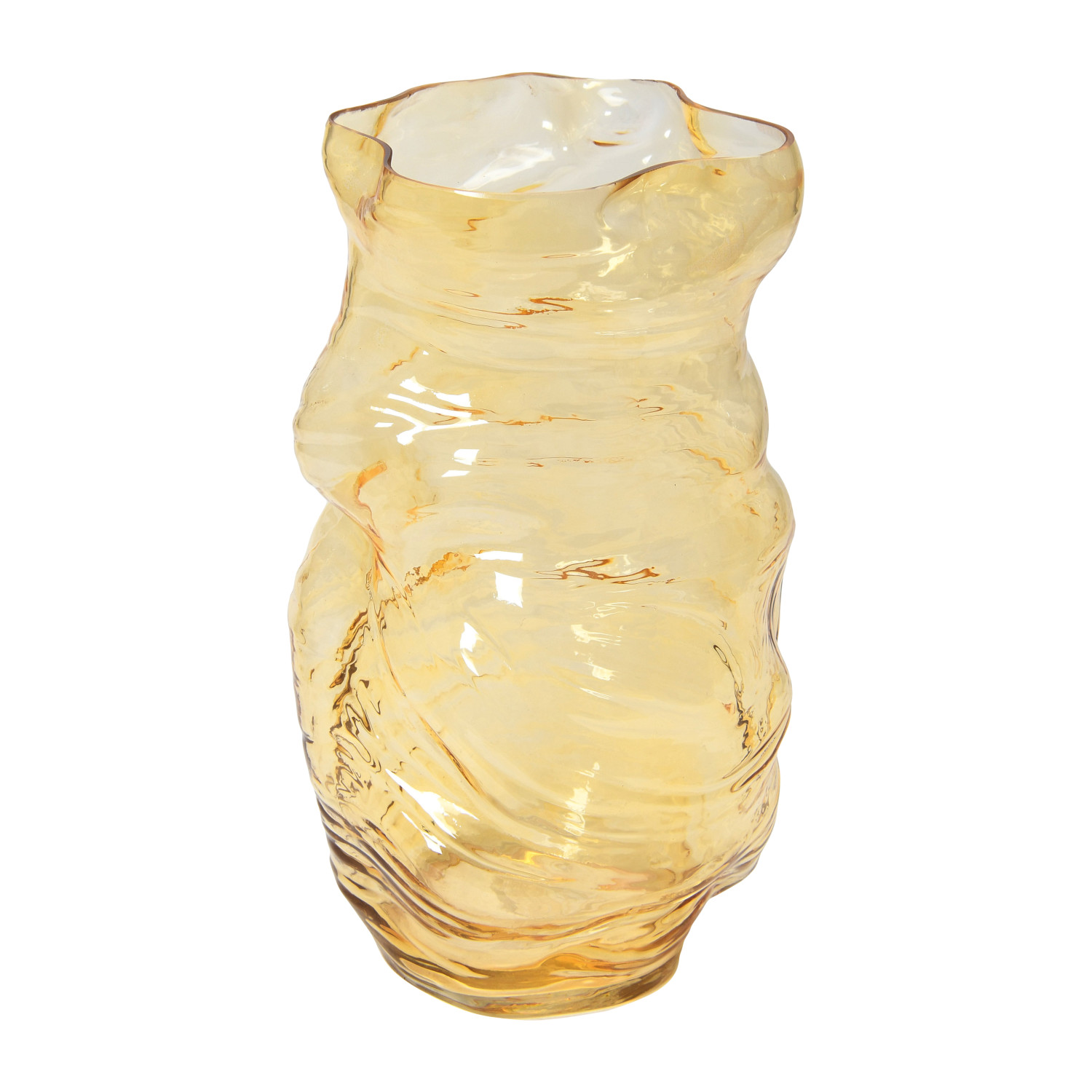 Catalog Name: 7-3/4"L x 7-3/4"W x 13-3/4"H Hand-Blown Glass Organic Shaped Vase, Amber Color
