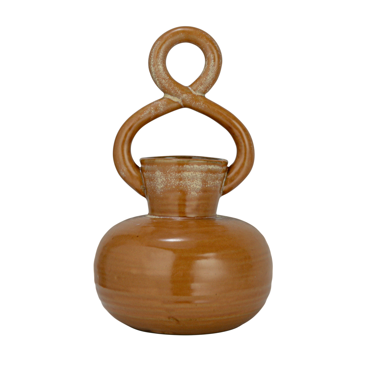Catalog Name: 5-1/4" Round x 8-1/2"H Stoneware Vase w/ Twisted Handle, Reactive Glaze, Brown (Each One Will Vary)