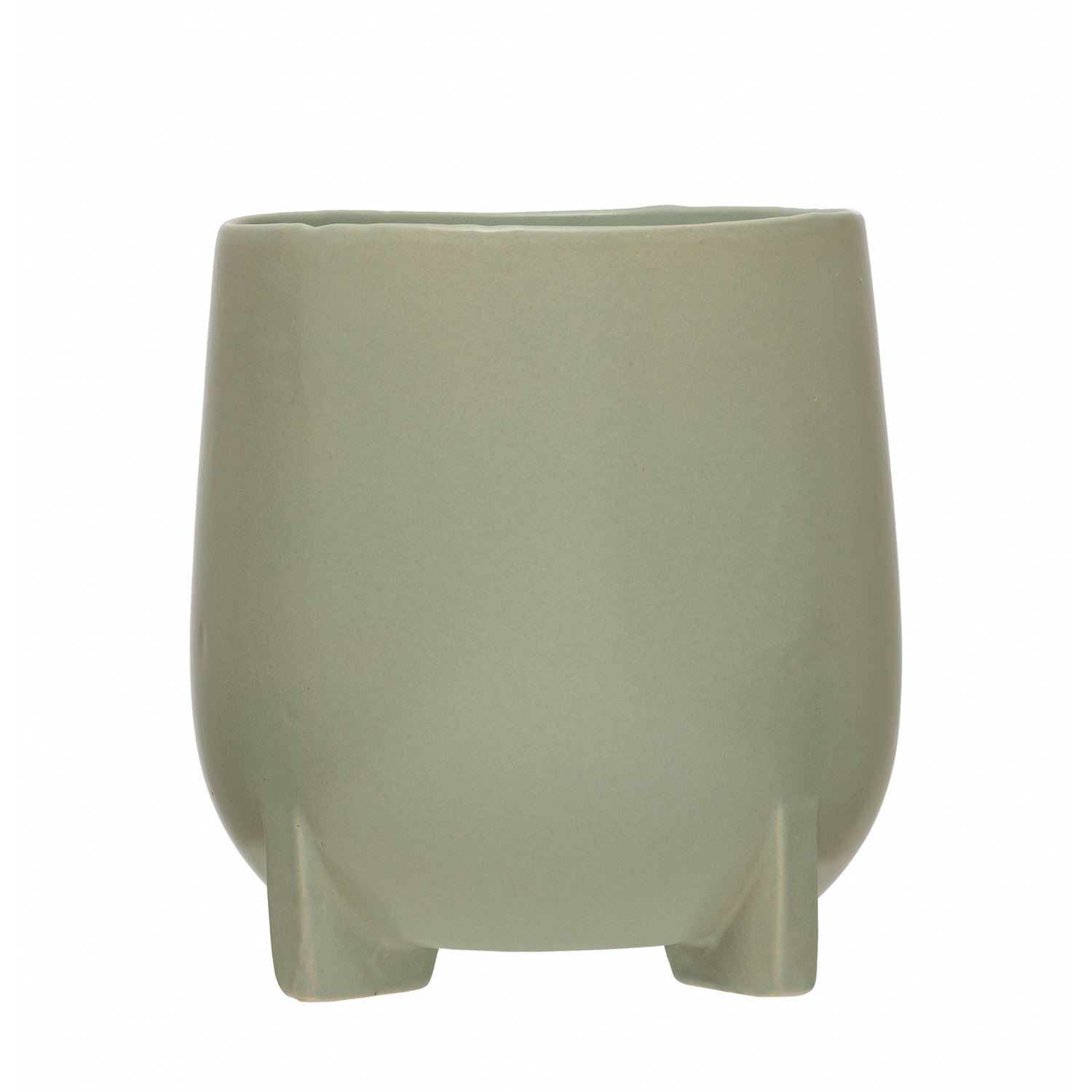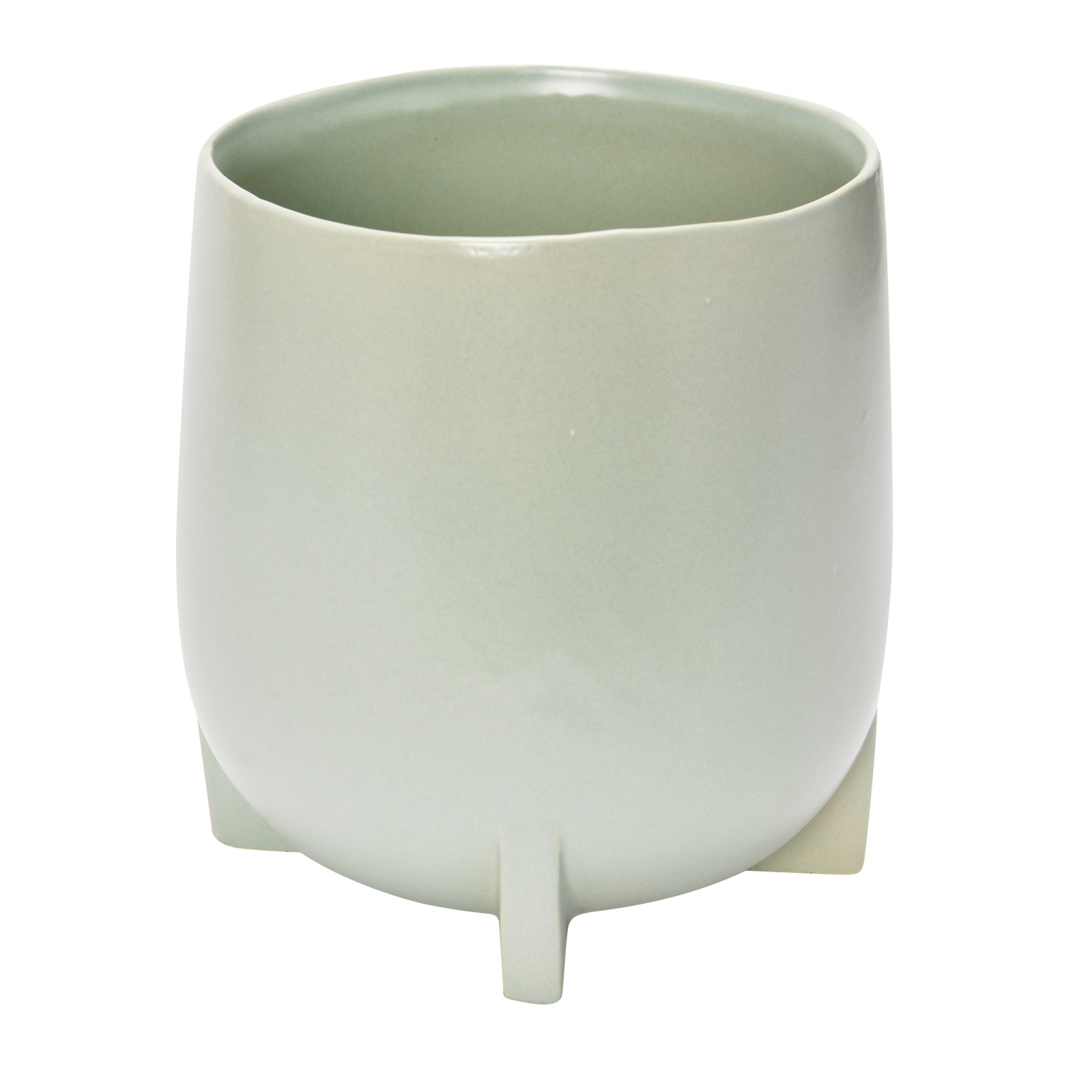 This minimalist Scandinavian planter features sleek, matte stoneware with a carved footed base. Footed stoneware planter in mint blue finish. Add a dash of contemporary charm to any living space with this stylishly versatile planter. Made from 100% stoneware.