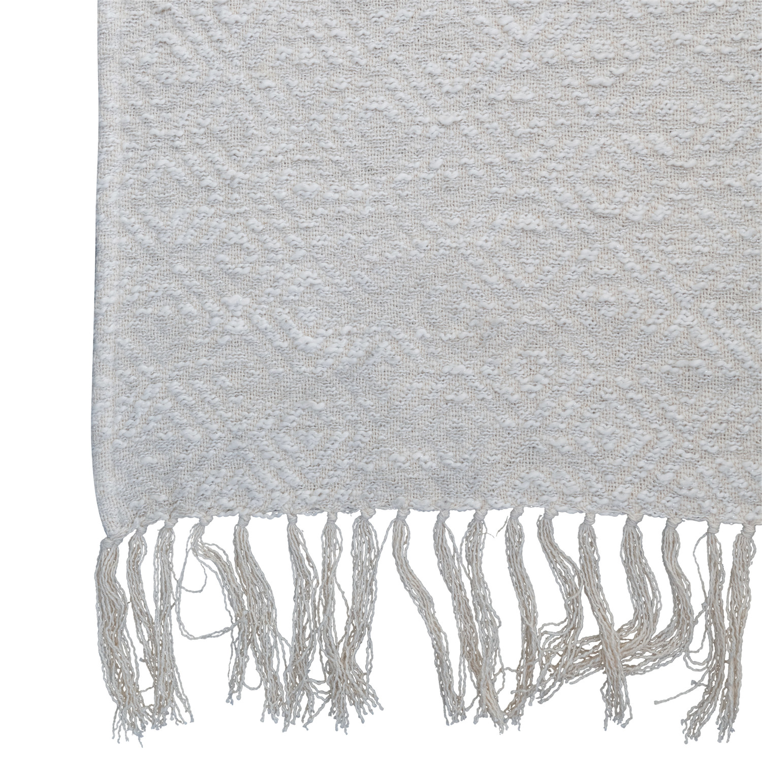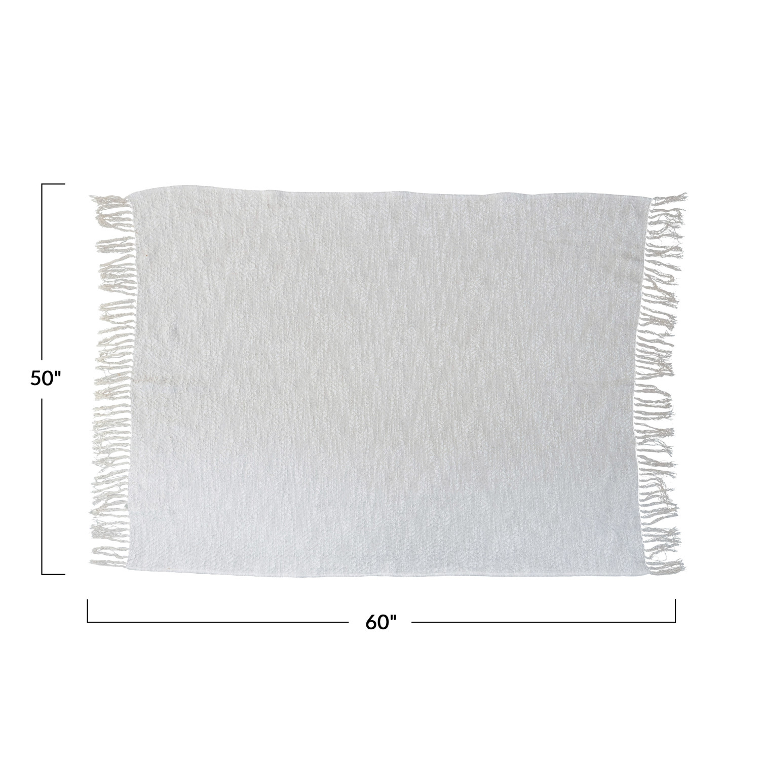 Catalog Name: 60"L x 50"W Cotton Throw w/ Silver Metallic Thread & Fringe, Cream Color