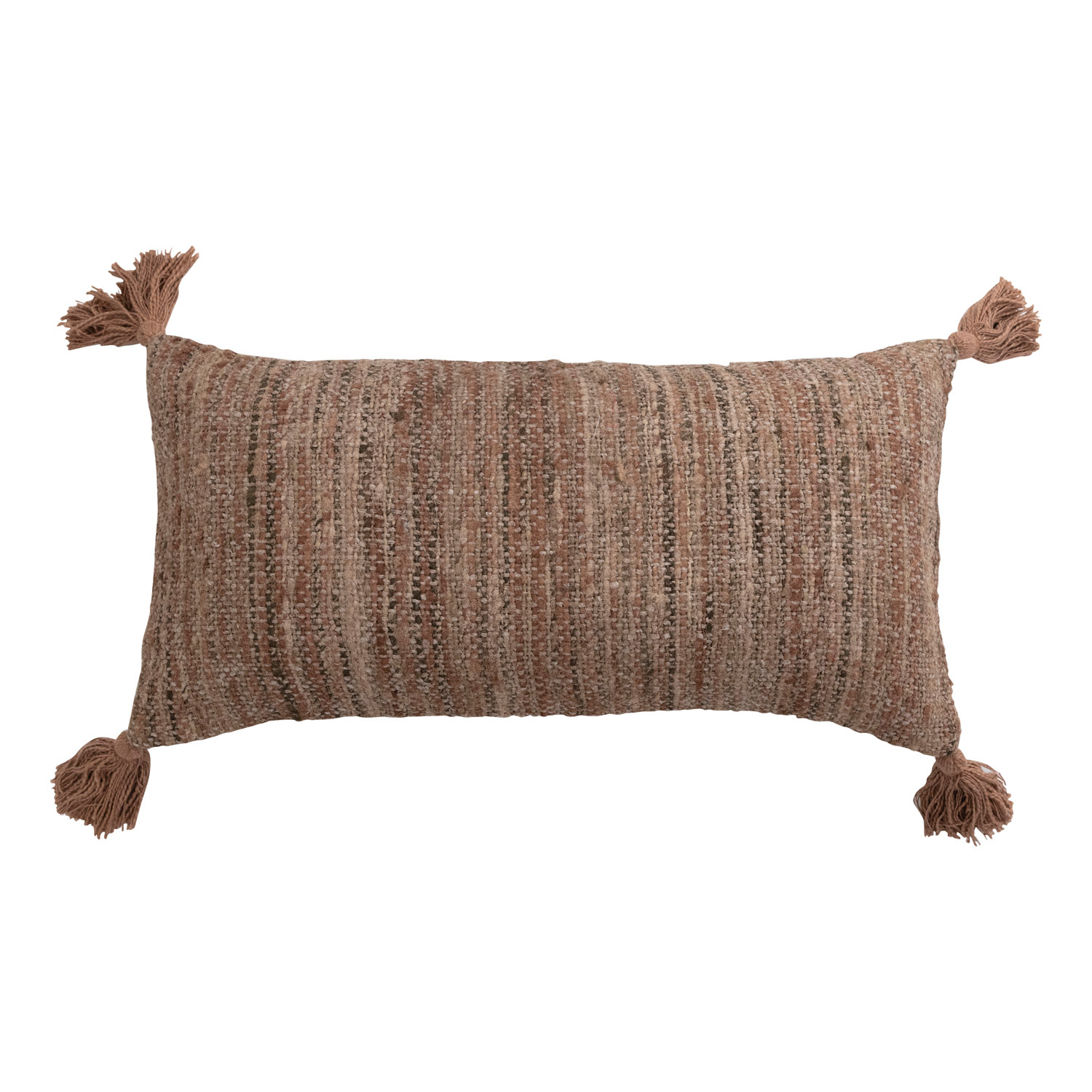 Catalog Name: 28"L x 14"H Woven Cotton Striped Lumbar Pillow w/ Chambray Back & Tassels, Multi Color