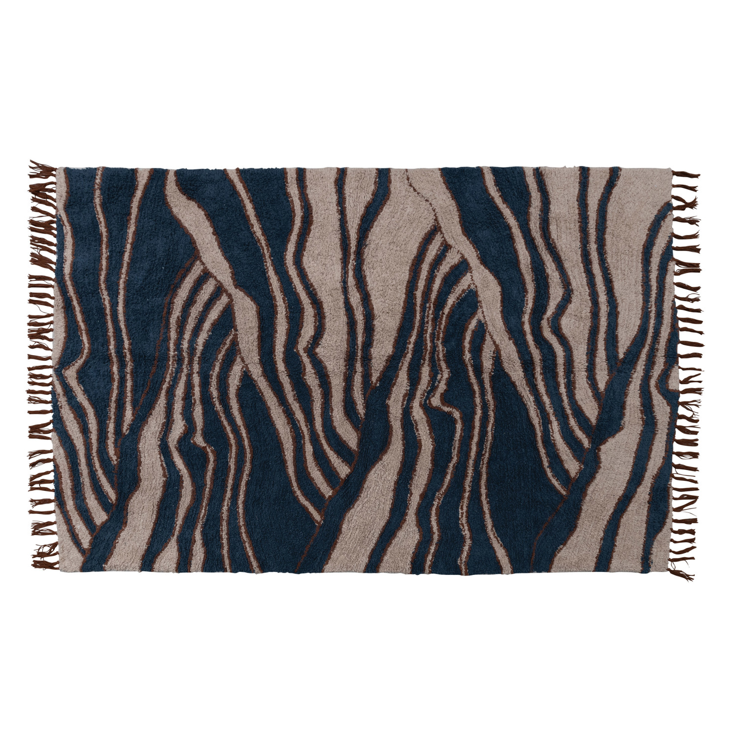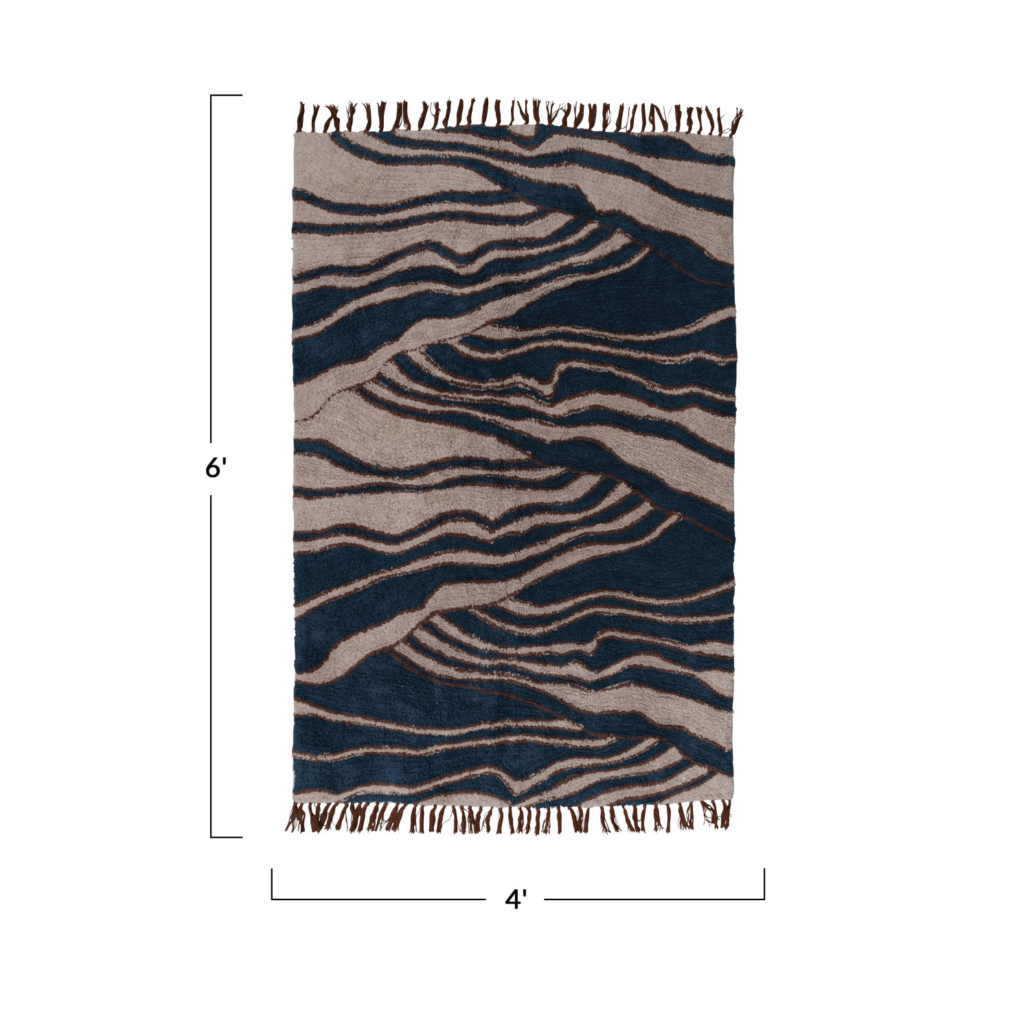 Catalog Name: 4' x 6' Cotton Tufted Rug w/ Wave Design & Fringe, Beige & Navy Color