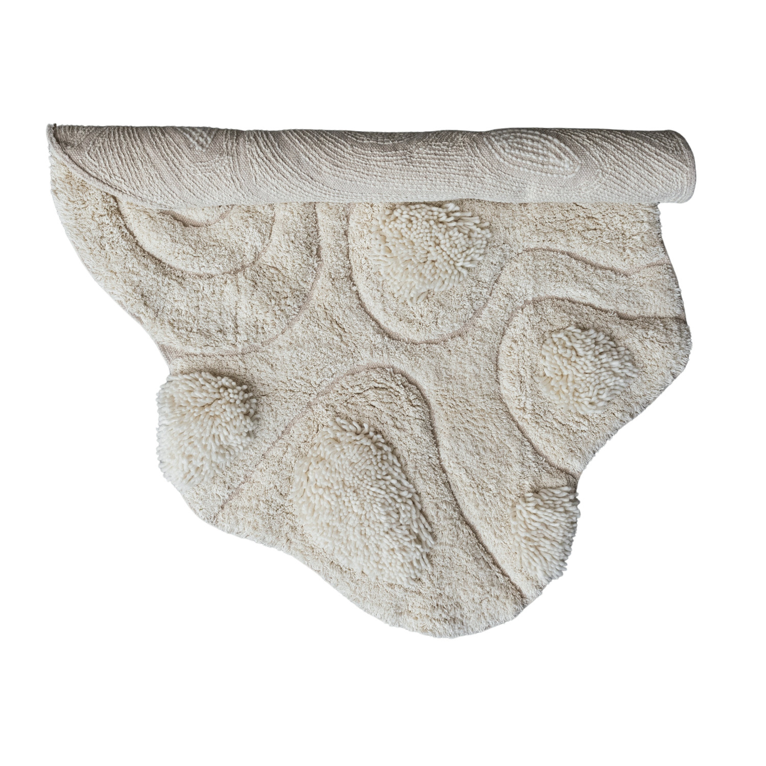 Catalog Name: 3' x 3'8" Cotton & Wool Tufted Organic Shaped Rug w/ Design & Varying Pile Height, Natural