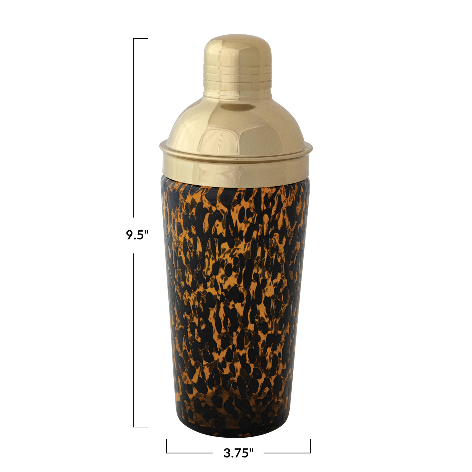 20 oz. Confetti Glass Cocktail Shaker w/ Stainless Steel Top, Tortoise Shell & Gold Finish