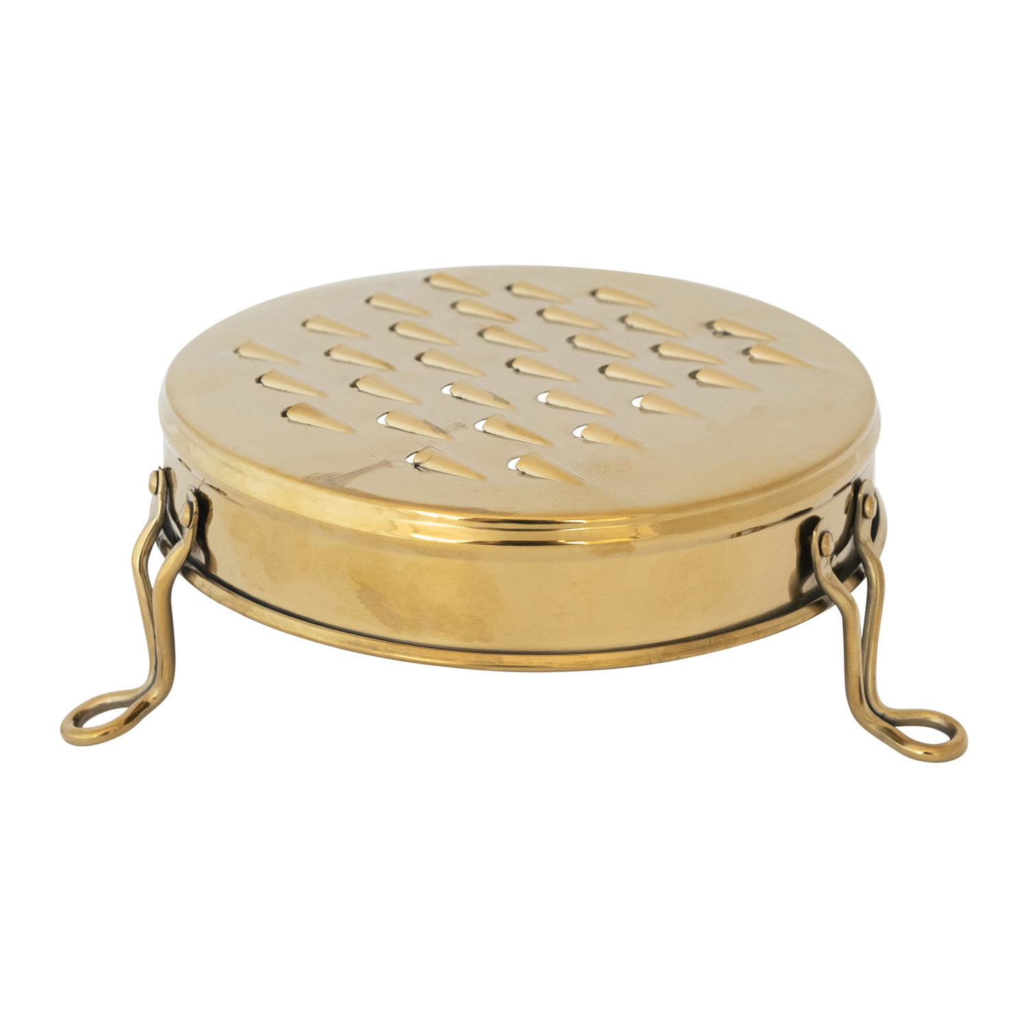 Catalog Name: 6-1/2" Round x 2-1/2"H Stainless Steel Footed Grater, Gold Finish