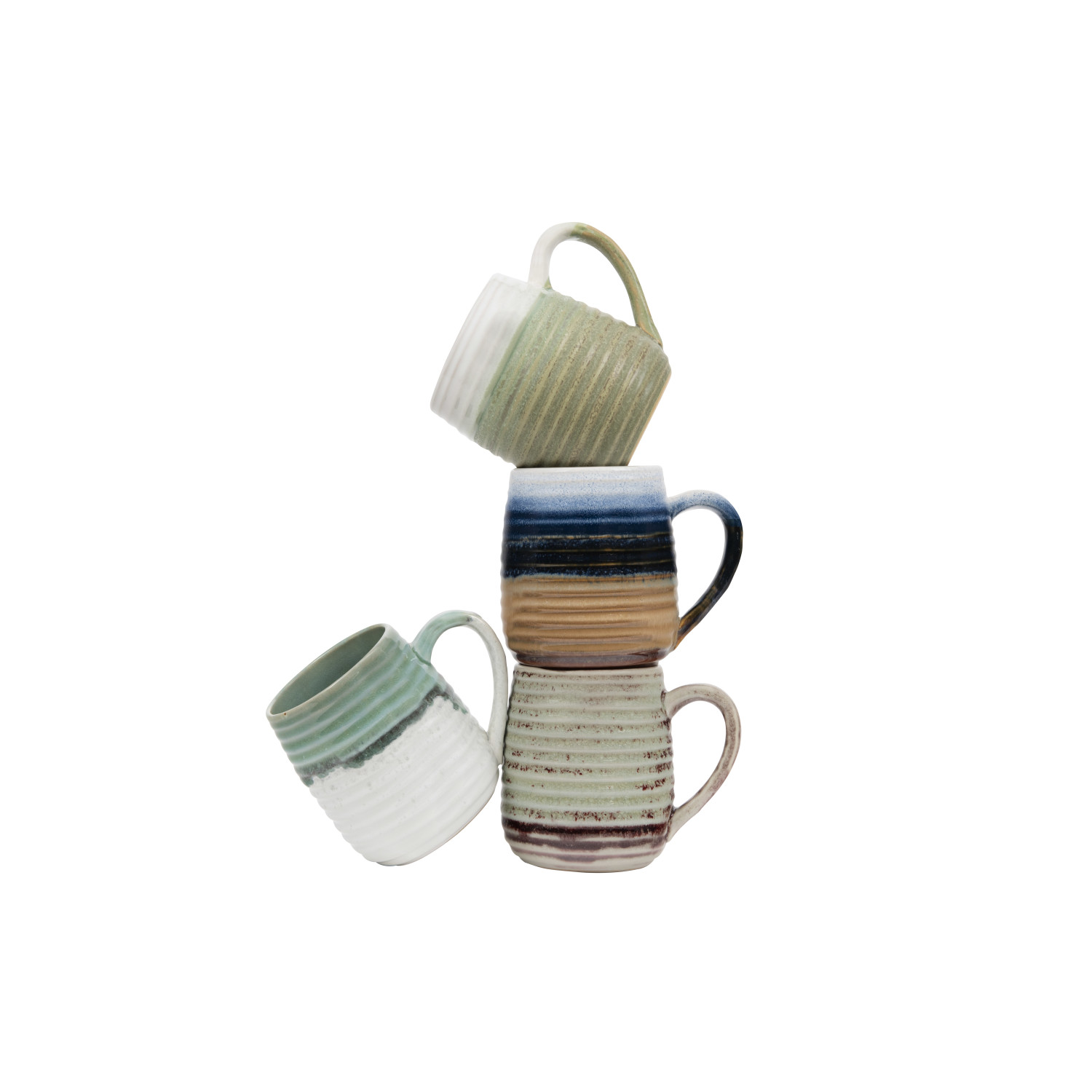 Catalog Name: 4-1/4" Round x 4-1/2"H 16 oz. Stoneware Ribbed Mug, Reactive Glaze, 4 Colors (Each One Will Vary)