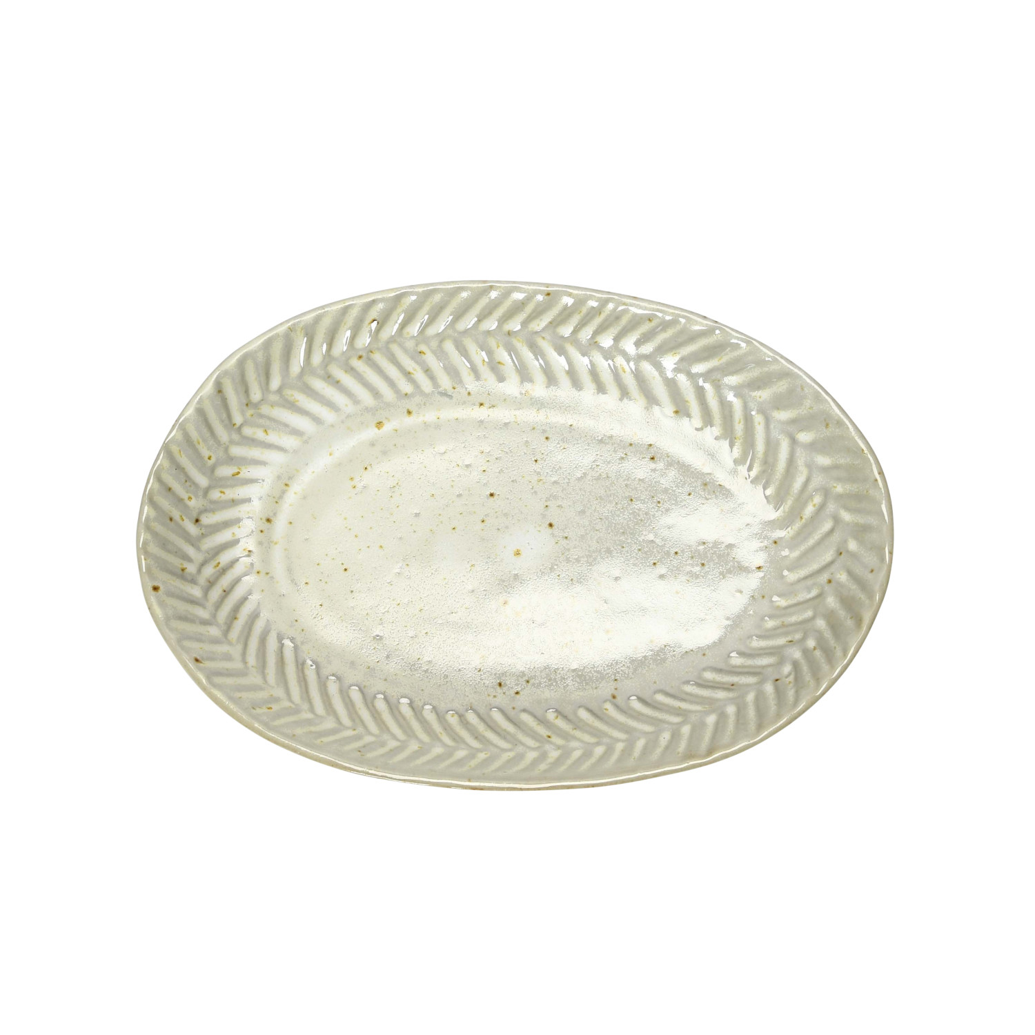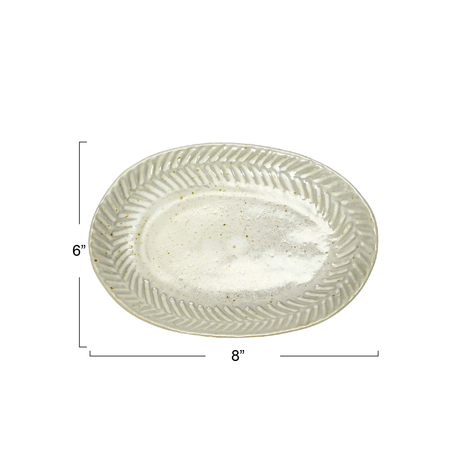 Catalog Name: 7-3/4"L x 5-1/2"W Debossed Stoneware Plate, Reactive Glaze, White (Each One Will Vary)