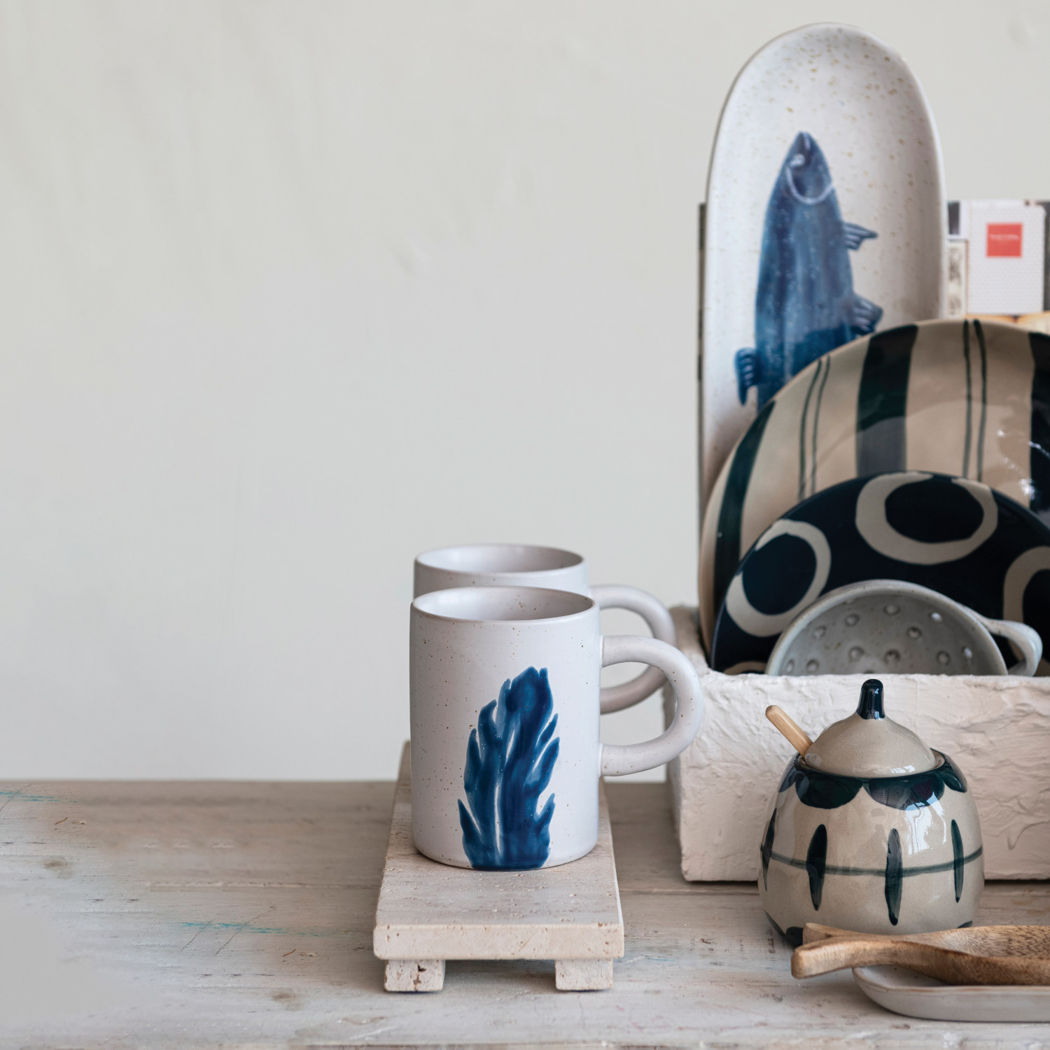 Our thoughtfully crafted collection of serve ware showcases an expansive selection of natural materials and artisanal silhouettes that are all intentionally designed for the modern host. Elevate gatherings of friends and family with an offering of stylishly versatile pieces including serving bowls, pitchers, platters, crocks, ladles, salt and pepper shakers, pinch pots, tiered trays, creamers, appetizer boards, serving trays, so much more. Choose from a wide array of materials from marble to wood, and styles from rustic and modern to farmhouse and glam. Curate a dazzlingly elegant display for a dinner party, or simply add a touch of style to daily rituals with a piece that is sure to impress. This farmhouse-inspired stoneware serving bowl features intricately hand-painted stripes. This piece is food safe. Dishwasher safe. Made from stoneware.