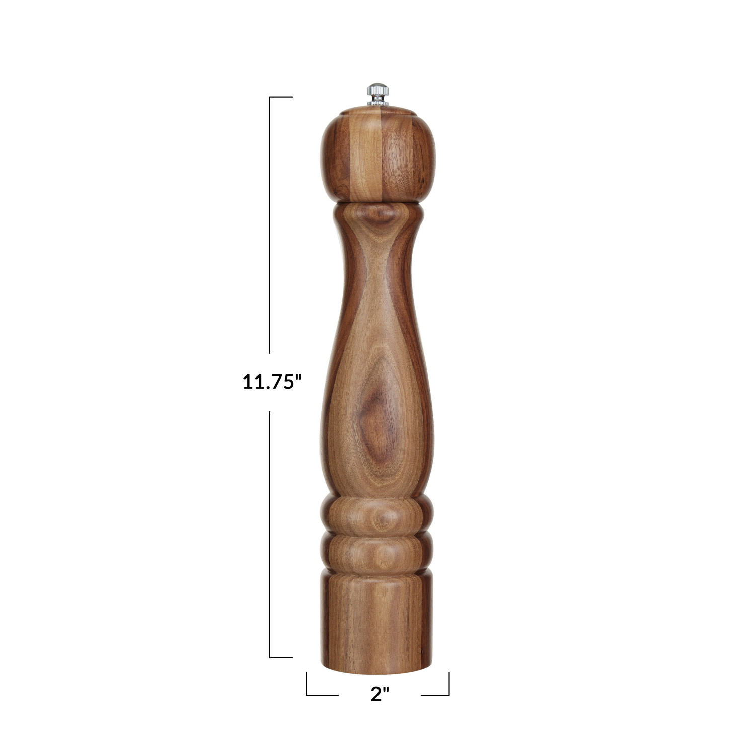 Catalog Name: 2" Round x 11-3/4"H Acacia Wood Salt/Pepper Mill, Natural