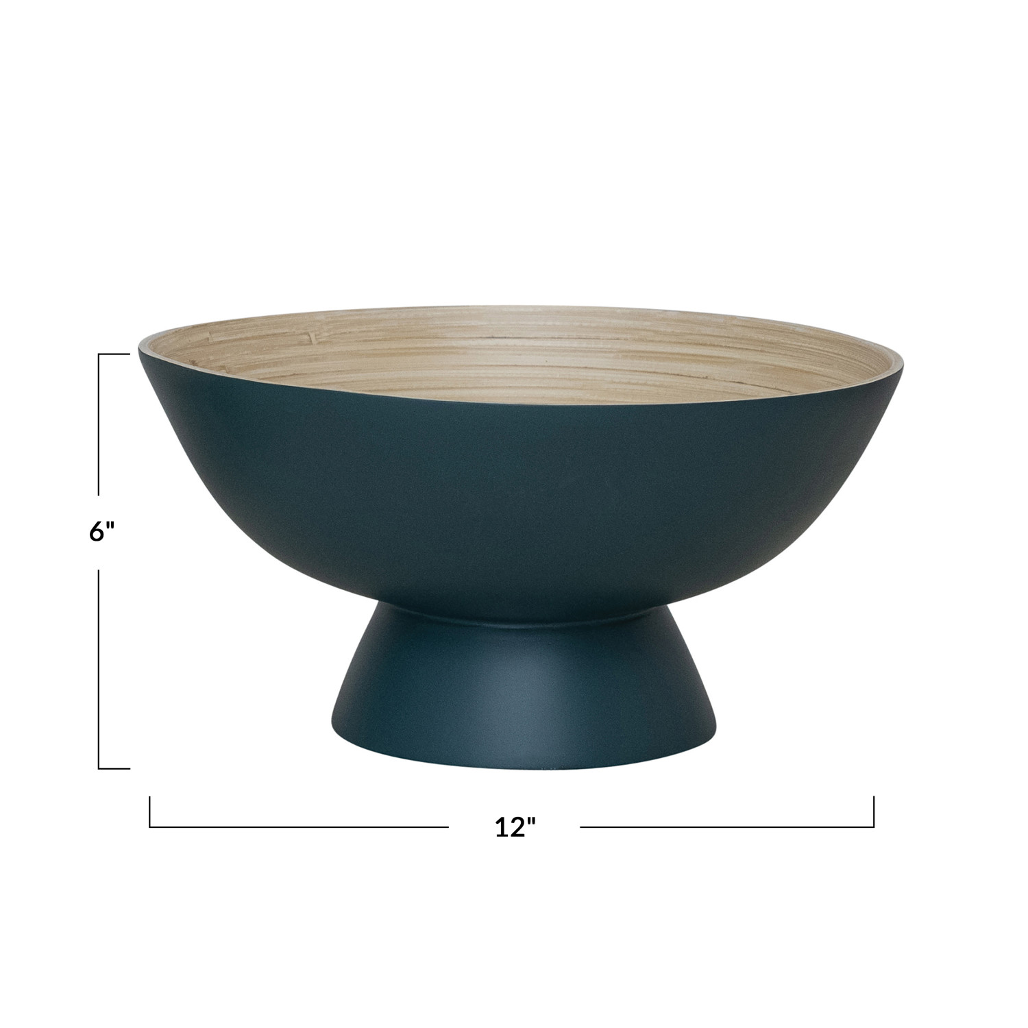 Catalog Name: 12" Round x 6"H Bamboo Footed Bowl w/ Natural Finish Inside, Matte Navy Color