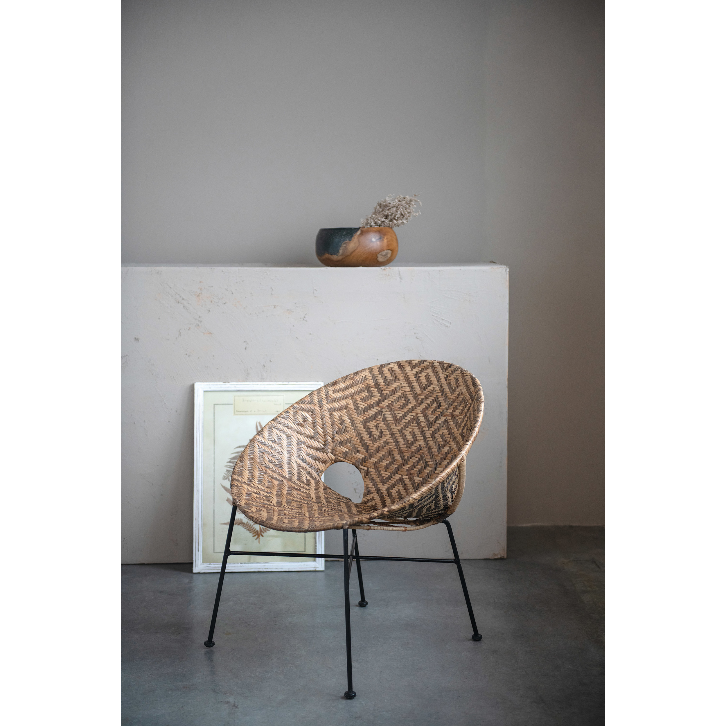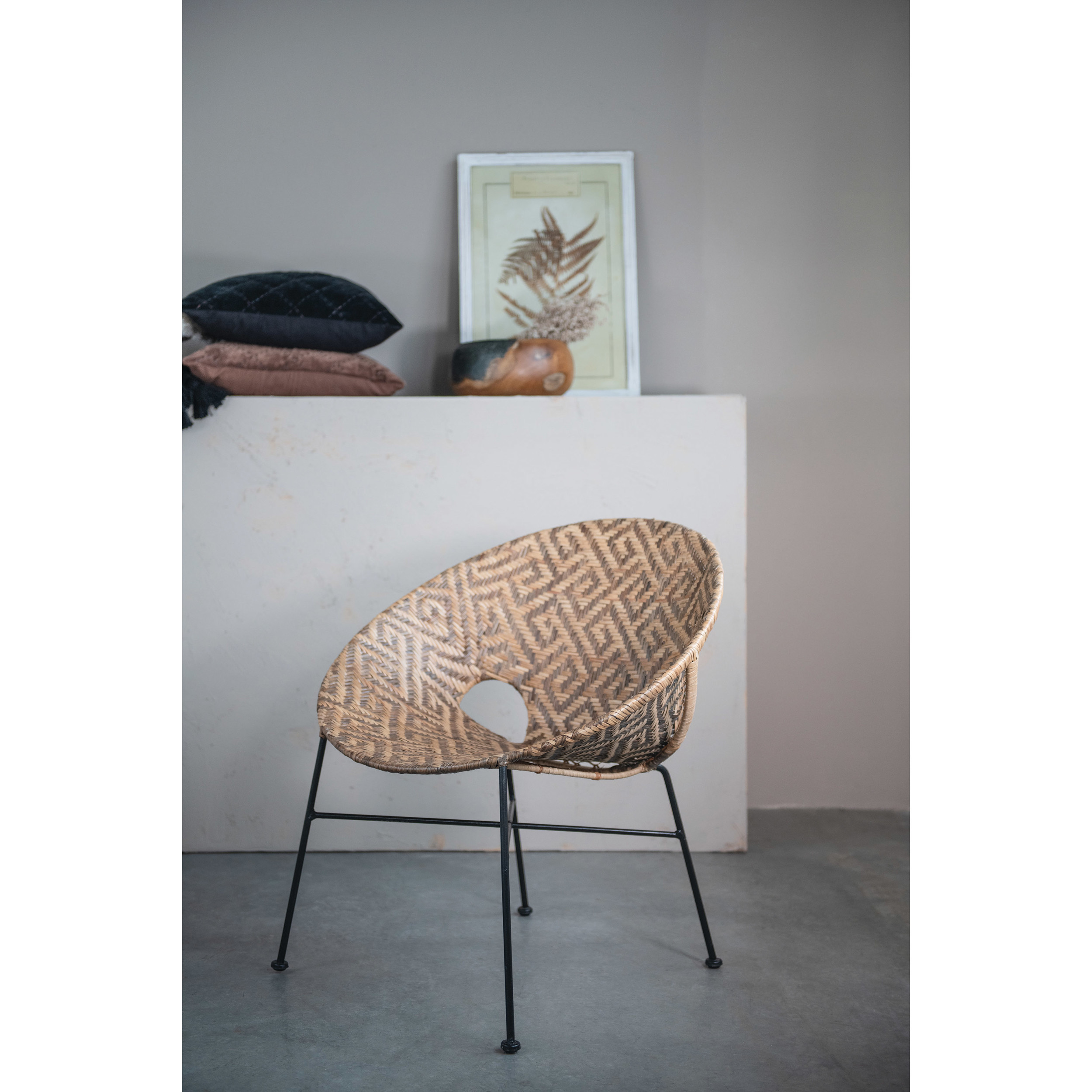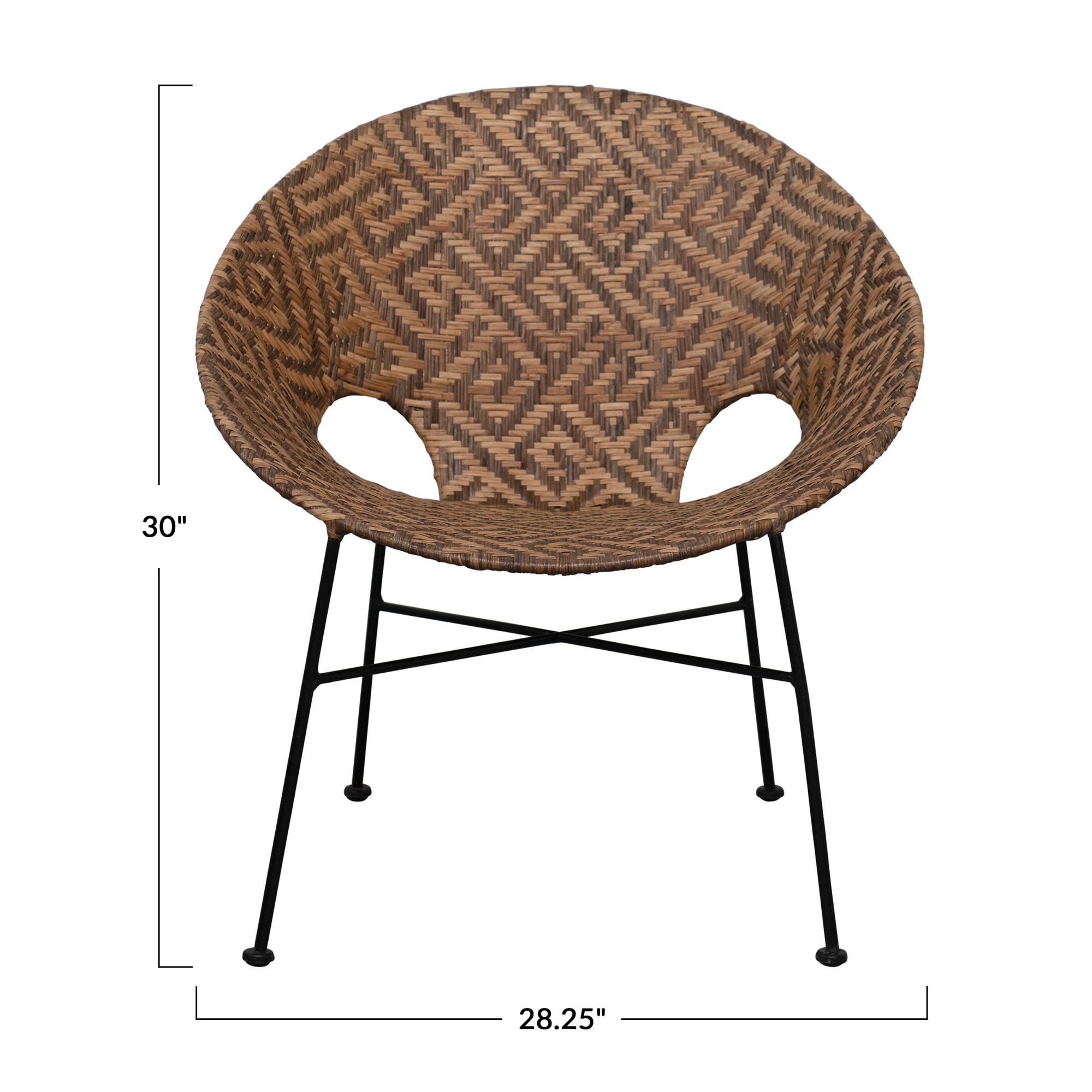 Catalog Name: 28"W x 28"D x 30"H Hand-Woven Rattan Chair w/ Pattern, Natural w/ Black Metal Frame