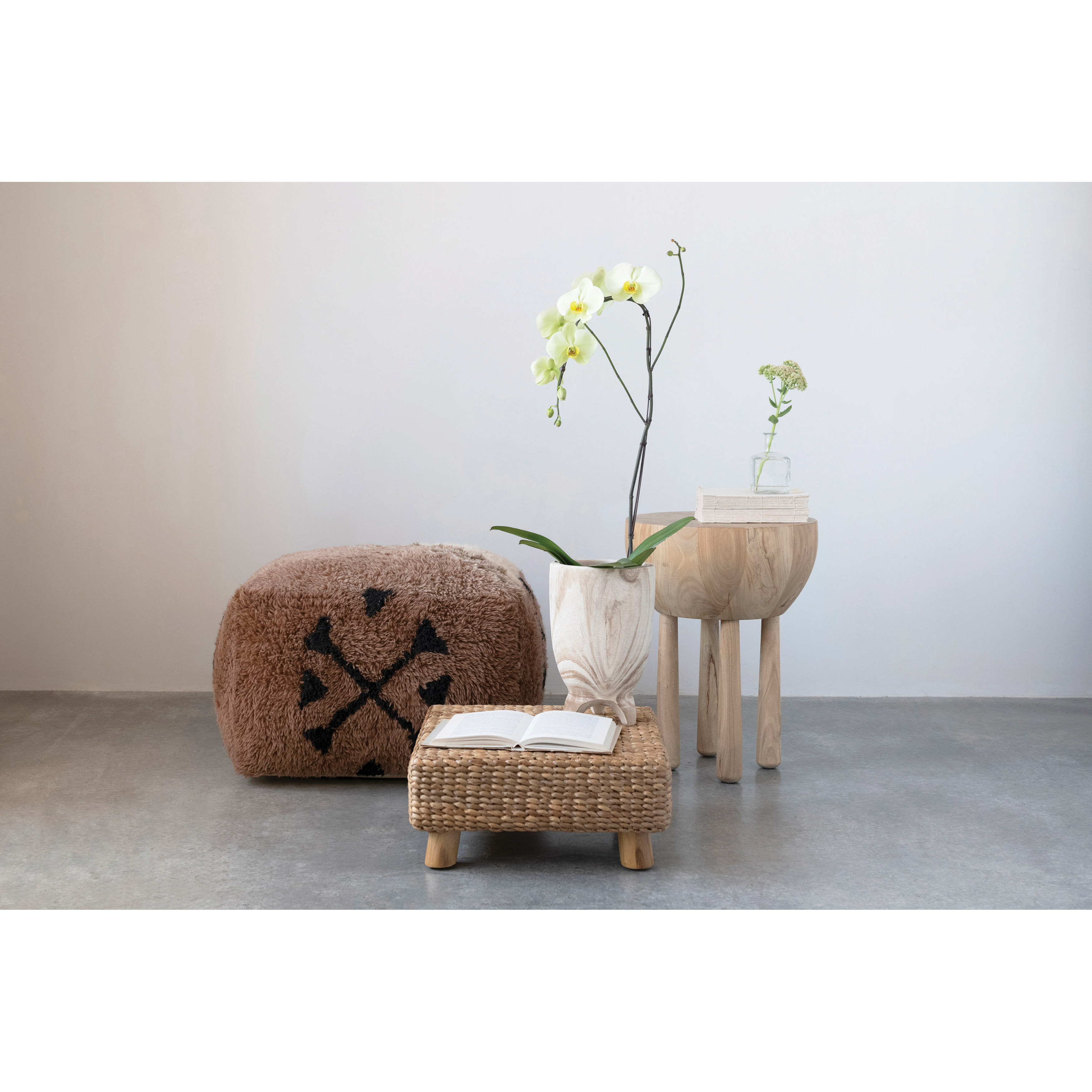 New Zealand Wool Tufted Pouf with Geometric Design