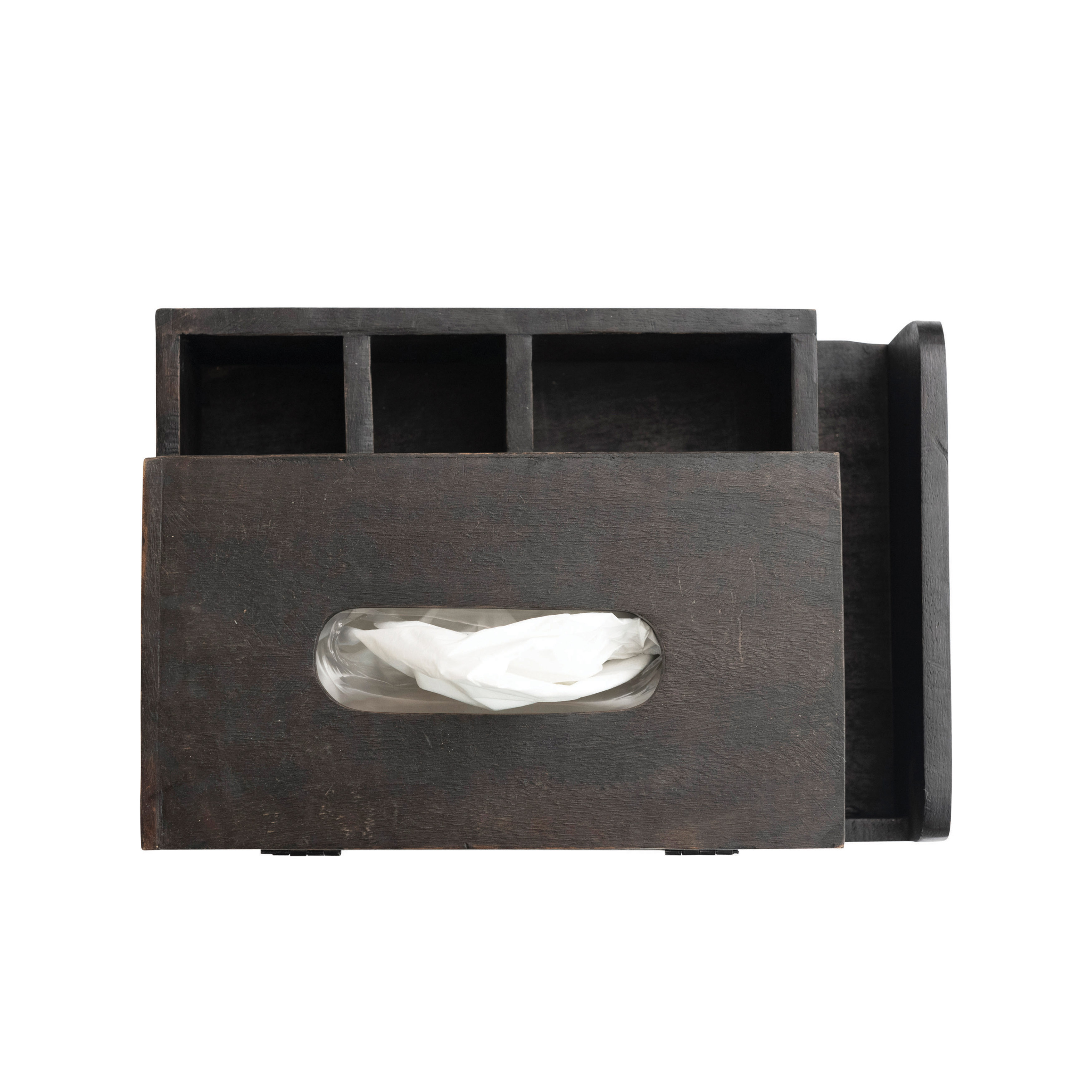 Black mango wood tissue box holder with 4 compartments. Add a touch of style to a powder room or home office with this artfully crafted tissue box holder. Made from 100% mango wood. Curate a space that reflects your unique sense of style with intentionally designed home décor.