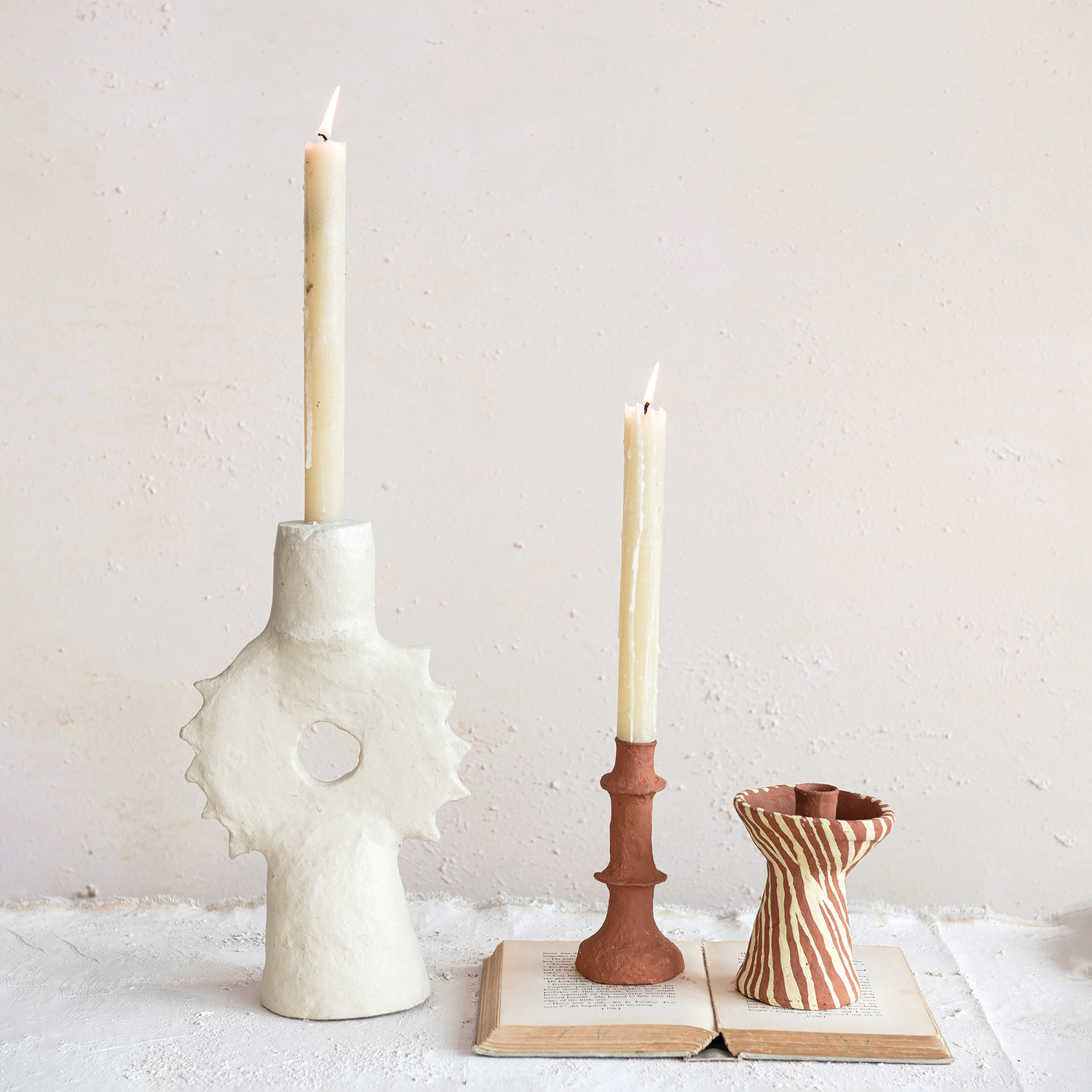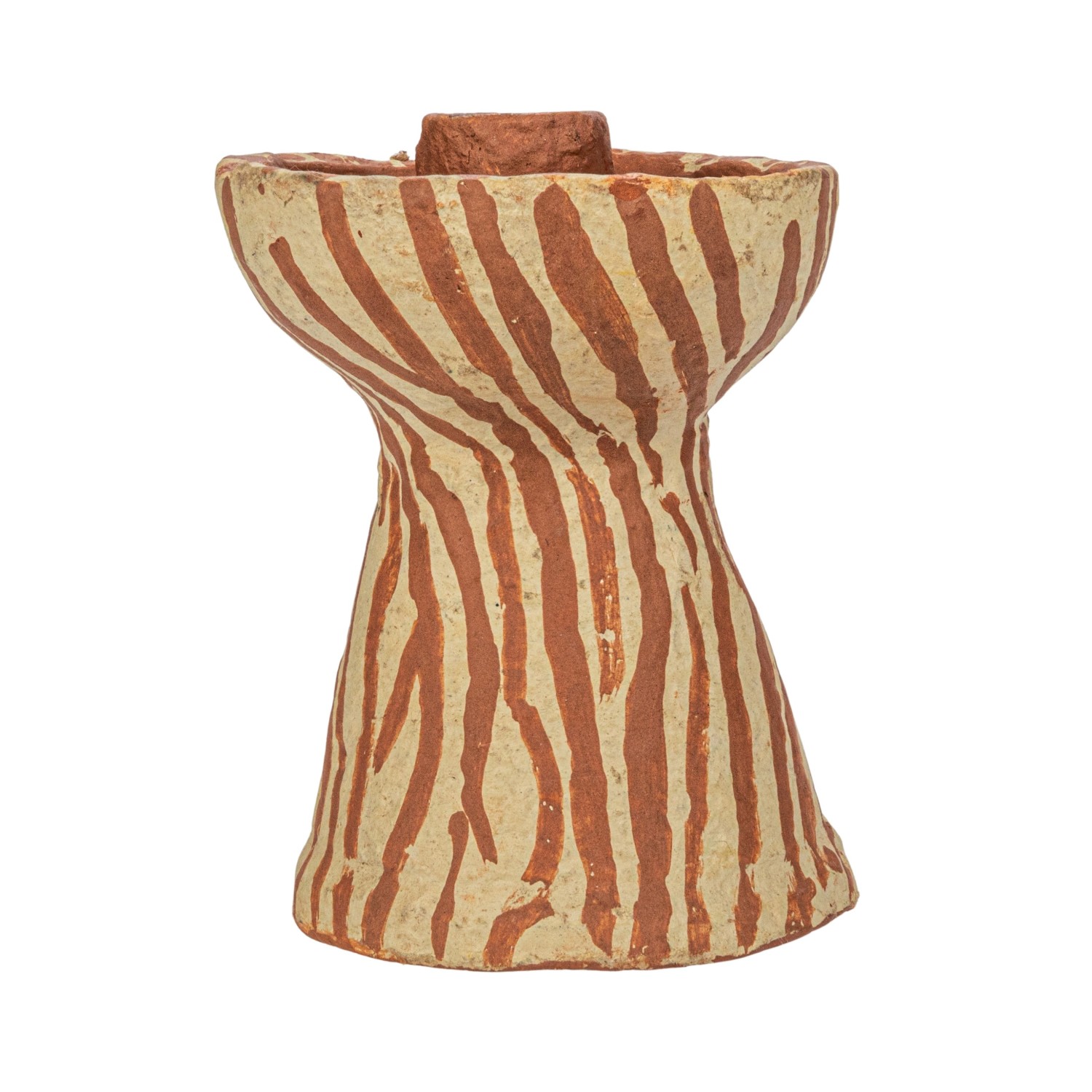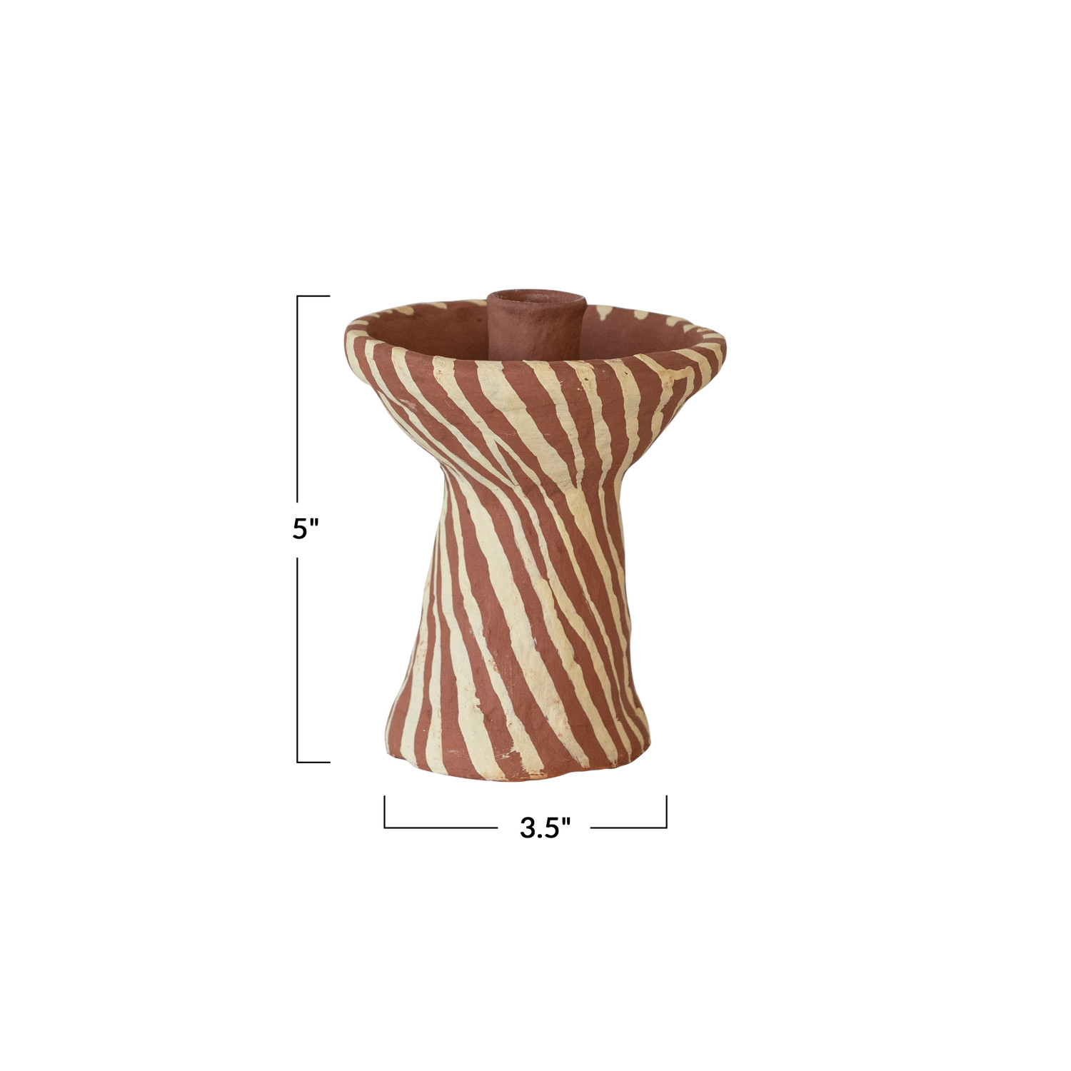 Catalog Name: Approximately 3-1/2" Round x 5"H Handmade Paper Mache Taper Holder w/ Design, Terra-cotta Color & Beige (Each One Will Vary)
