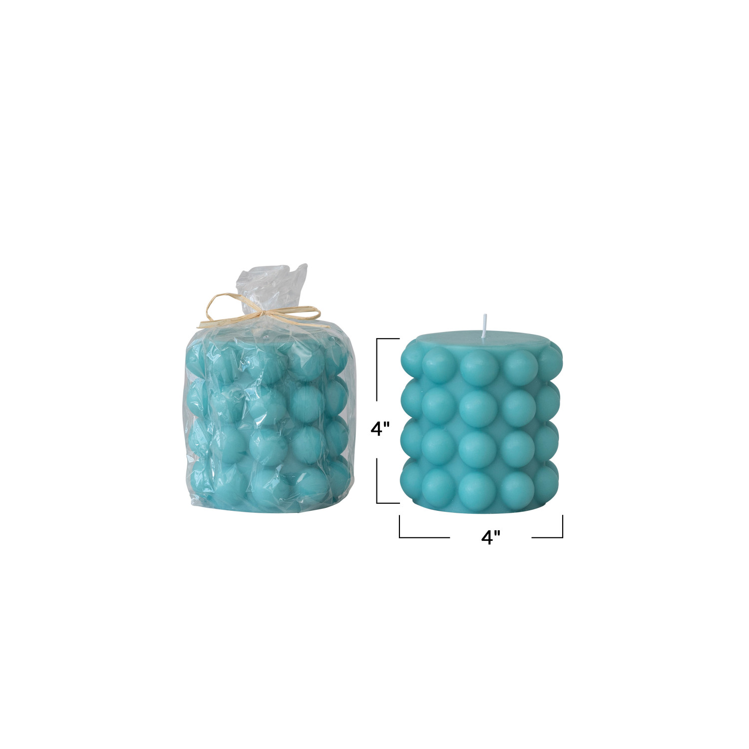 Catalog Name: 4" Round x 4"H Unscented Hobnail Pillar Candle, Cyan (Approximate Burn Time 80 Hours)