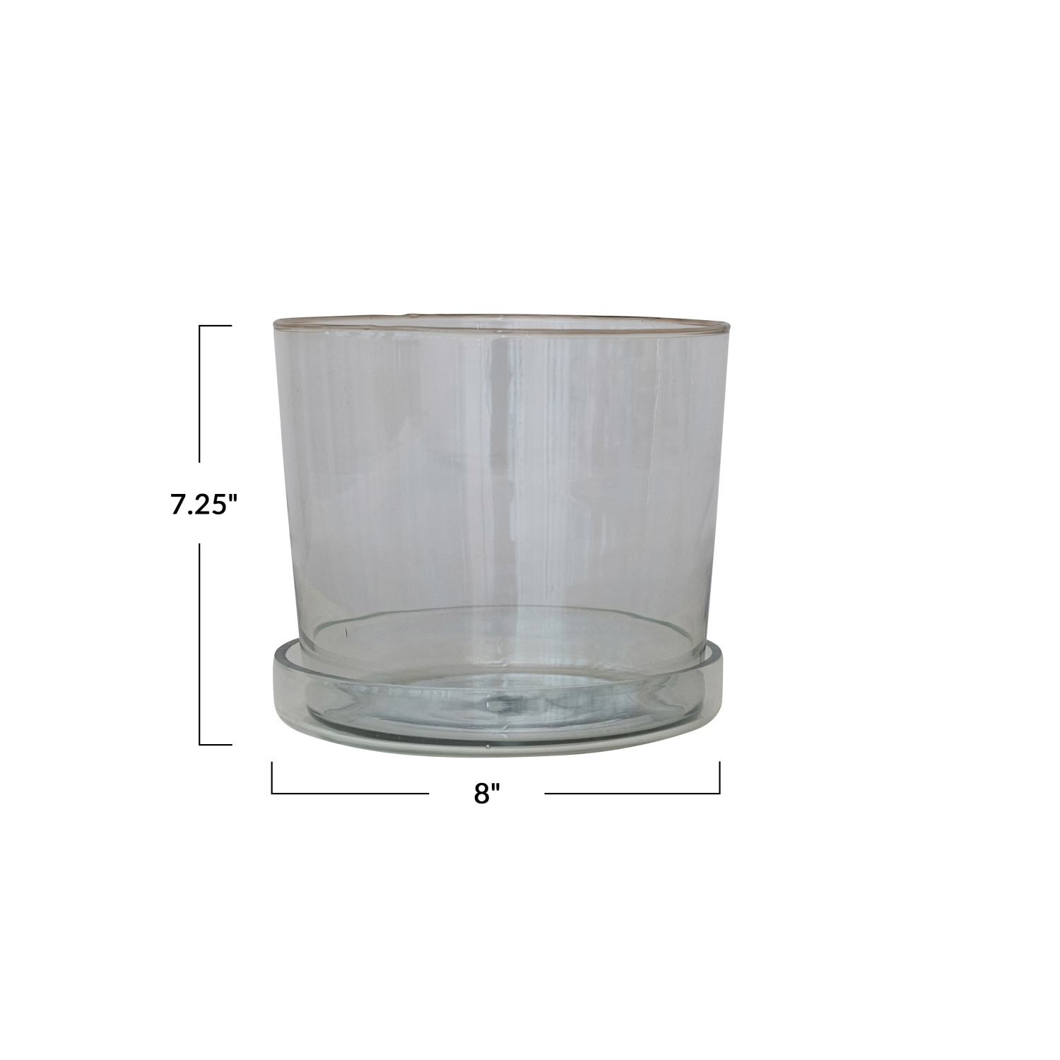 Catalog Name: 8" Round x 7-1/4"H Hand-Blown Recycled Glass Planter w/ Drainage Hole & Saucer, Set of 2 (Holds 7" Pot)