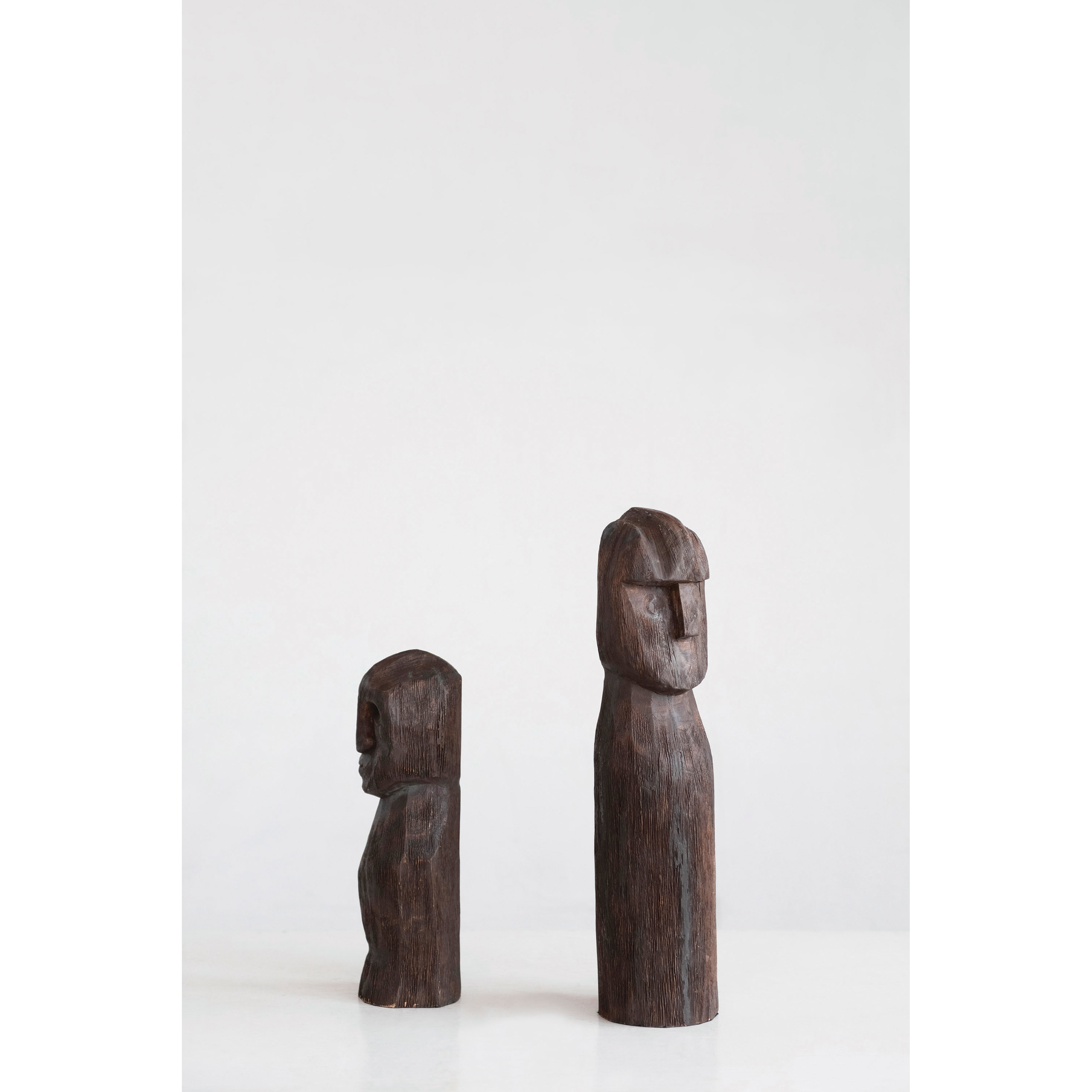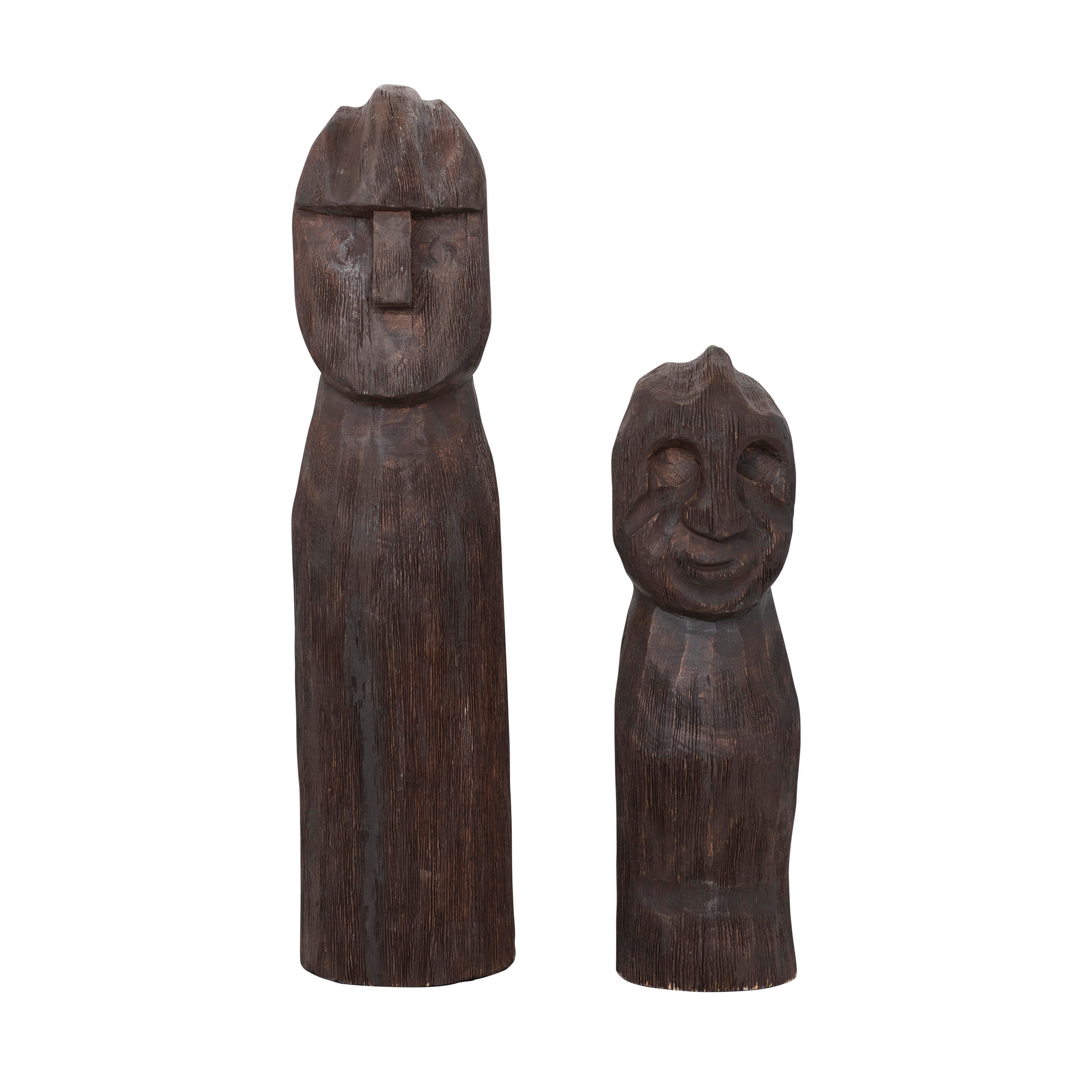 Catalog Name: Approximately 4" Round x 17-3/4"H Hand-Carved Mango Wood Figure, Walnut Finish (Each One Will Vary)