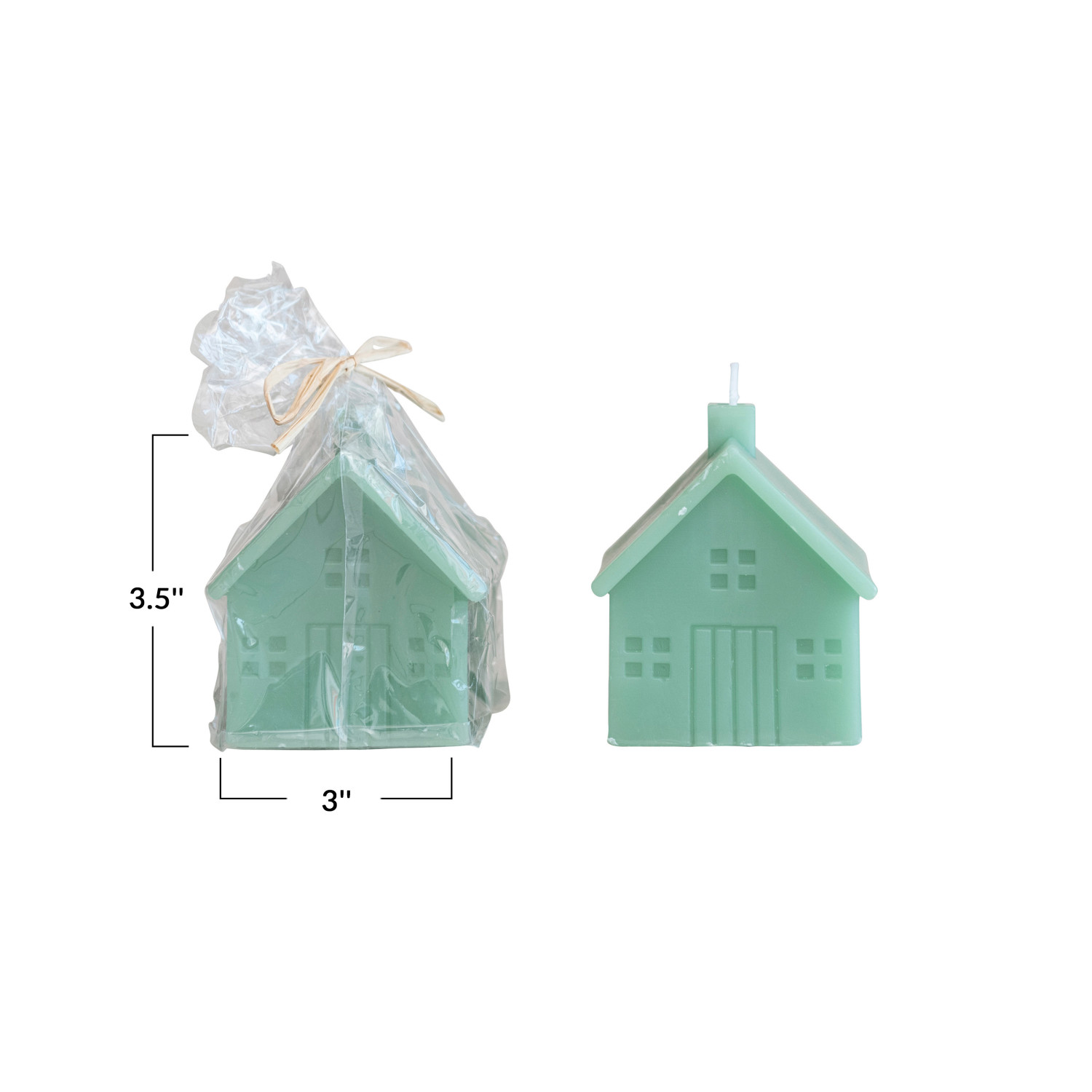 Catalog Name: 3" Square x 3-1/2"H Unscented House Shaped Candle, Mint Color (Approximate Burn Time 32 Hours)