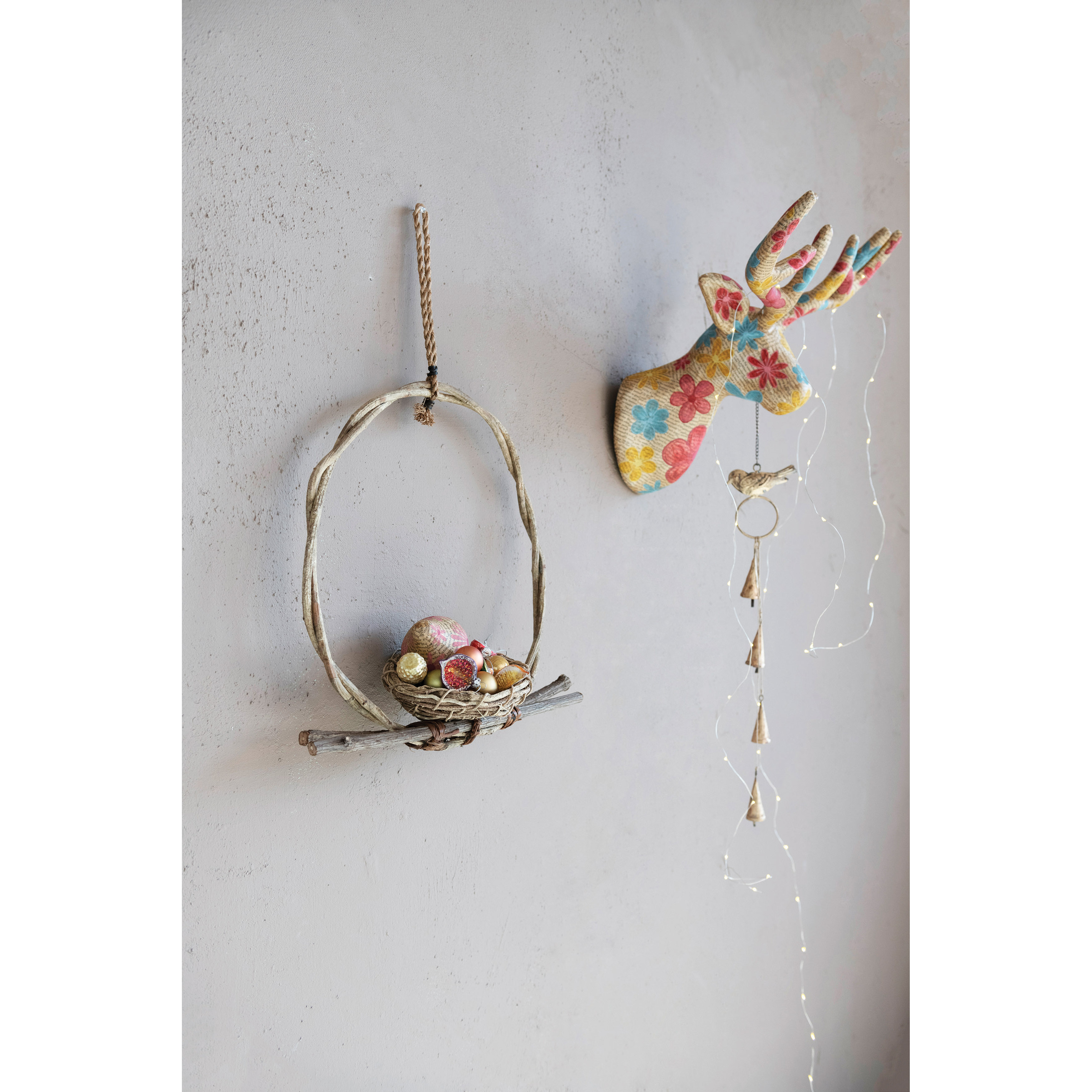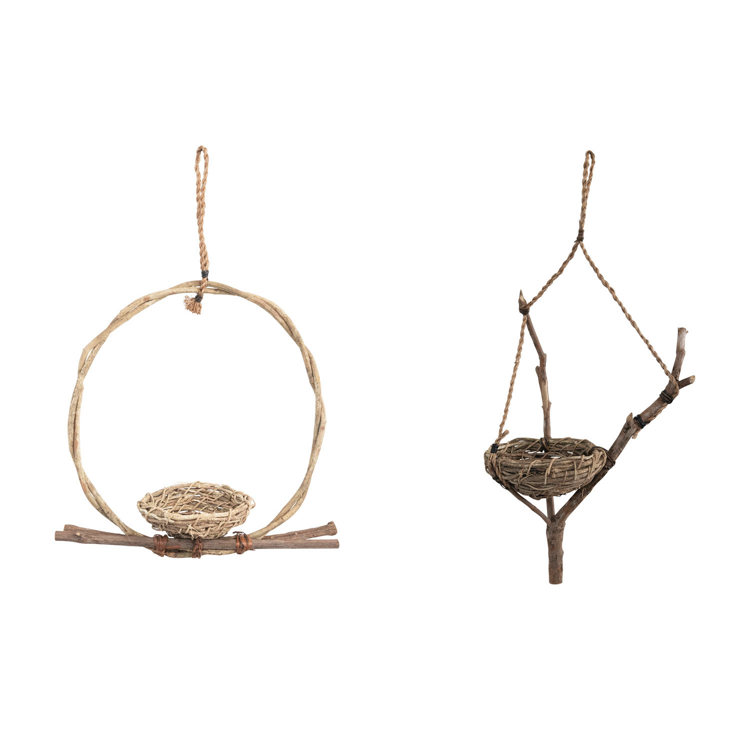 Catalog Name: Approximately 16-1/2"H - 20"H Hanging Vine and Twig Bird Nest, 2 Styles