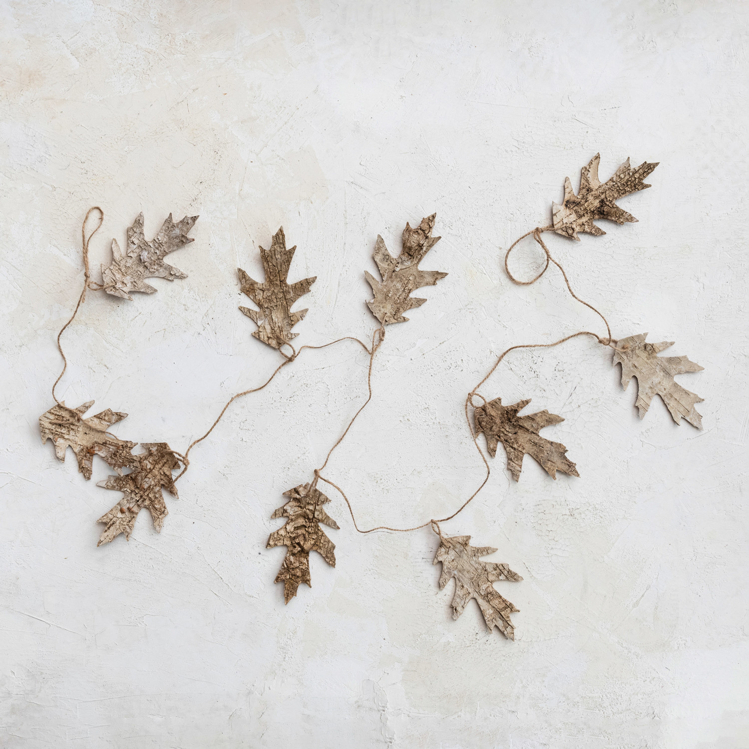 Birch Bark Oak Leaf Shaped Garland w/ Jute Cord, Natural