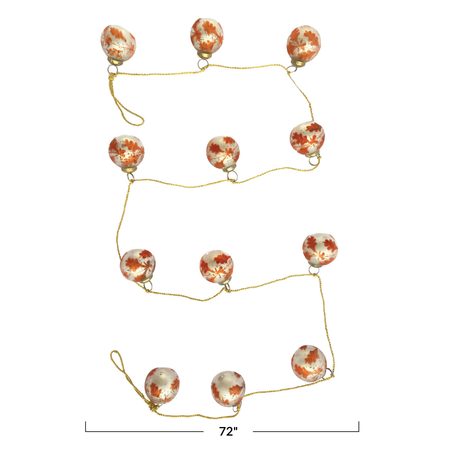 Catalog Name: 72"L x 2"H Etched Recycled Mercury Glass Ball Ornament Garland w/ Gold Cord, Matte Silver Finish & Coral Color