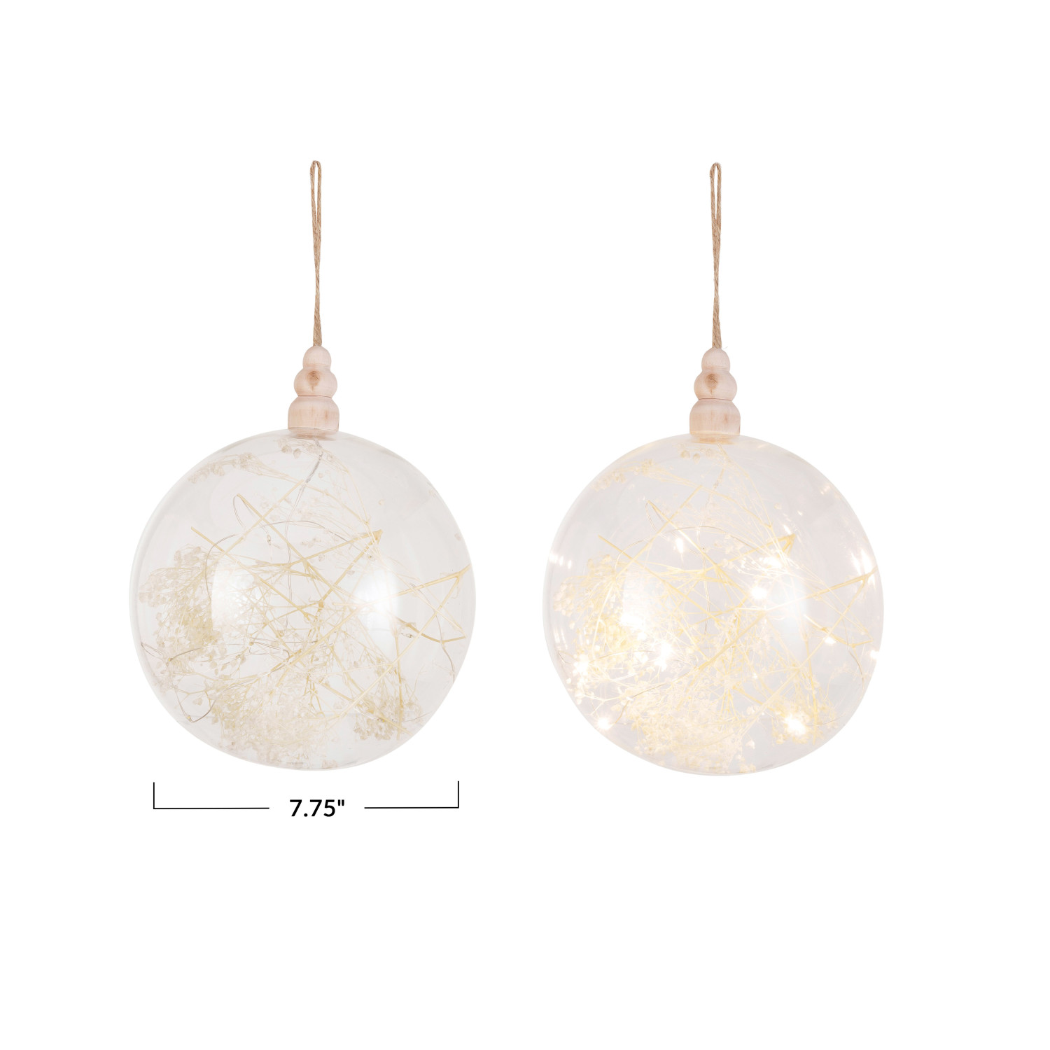 Catalog Name: 7-3/4" Round Glass & Wood LED Ball Ornament w/ Dried Botanicals (Requires 2-AA Batteries)