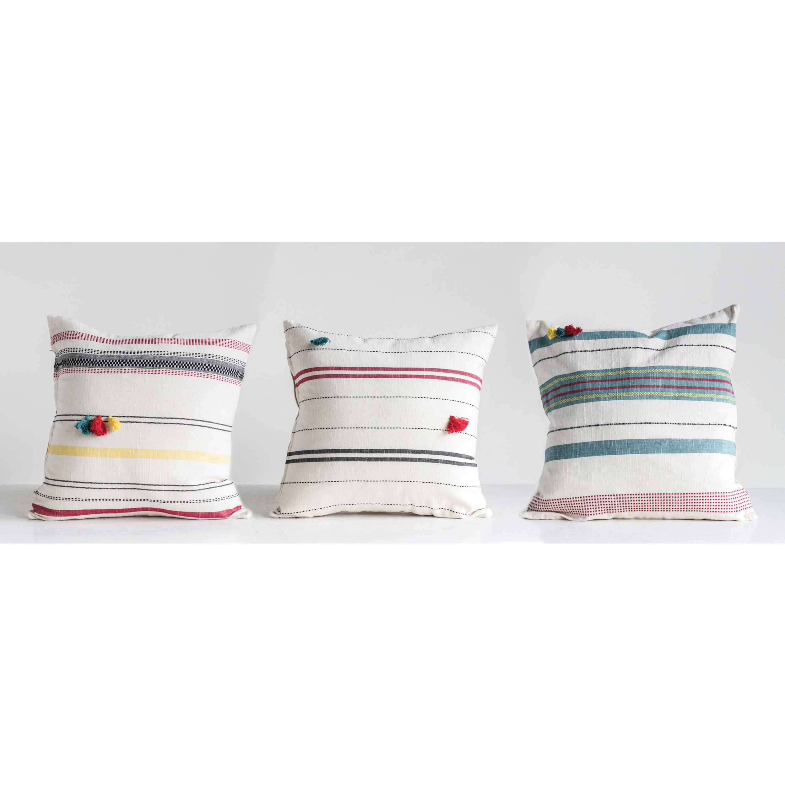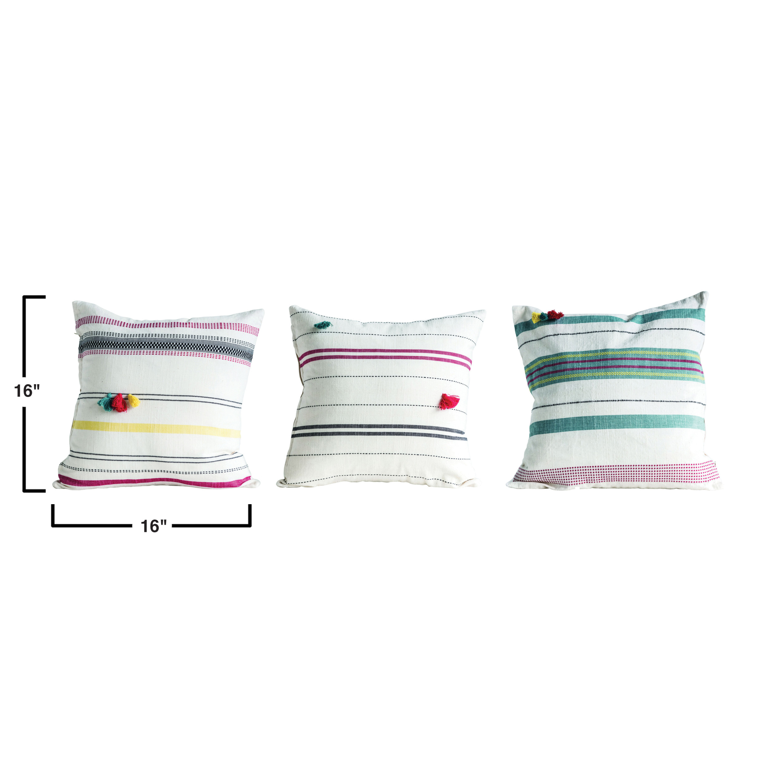 Catalog Name: 16" Square Hand-Woven Cotton Striped Pillow w/ Tassels, Multi Color, 3 Styles