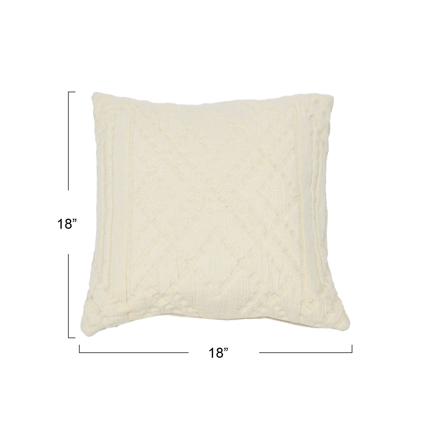 Catalog Name: 18" Square Woven Cotton Jacquard Pillow, Cream Color