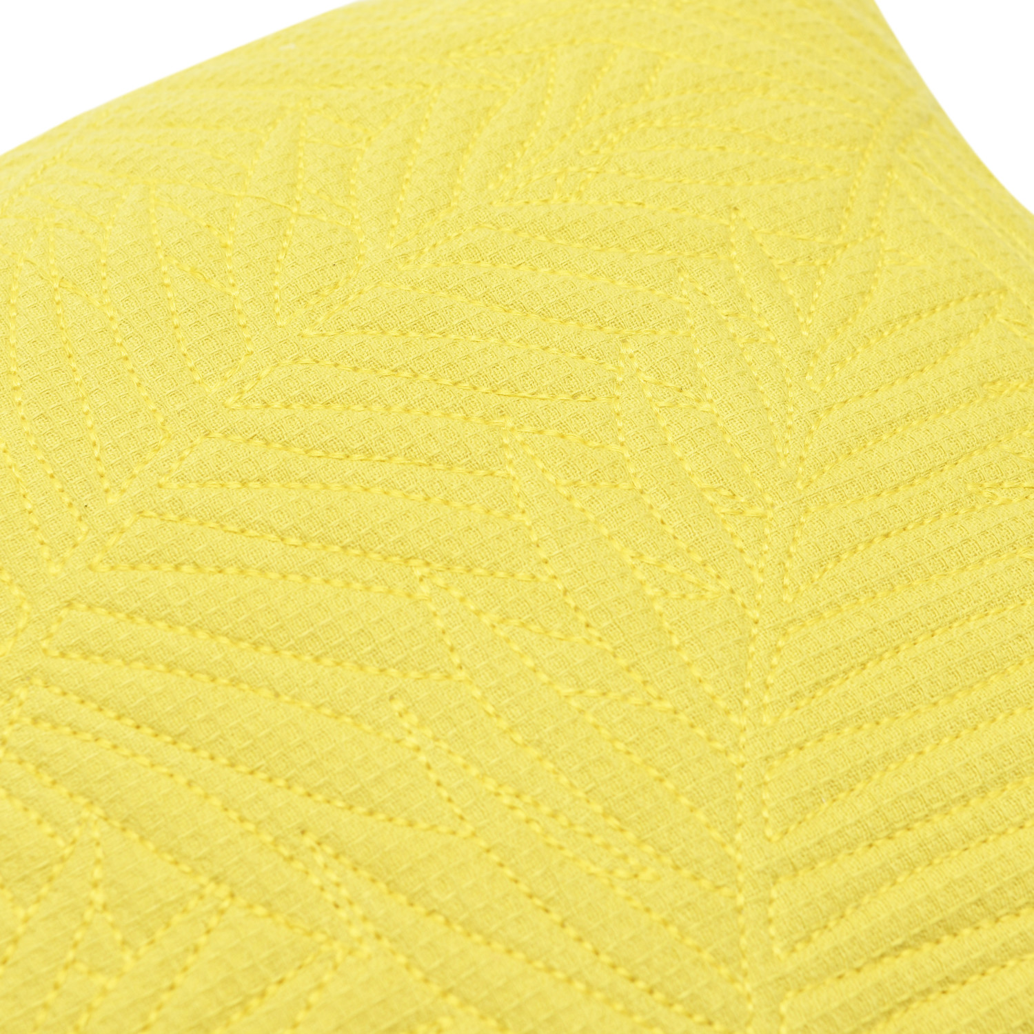 This subtly tropical throw pillow showcases a quilted fern frond pattern on soft cotton. Square chartreuse throw pillow with quilted fern frond pattern; Chartreuse cotton encasement on back. Express your constantly evolving style with the simple addition of this eye-catching pillow. Removable cotton throw pillow cover and insert; Hidden in seam zipper closure; Machine wash warm, gentle cycle, do not bleach, do not tumble dry; Do not dry clean, medium iron.