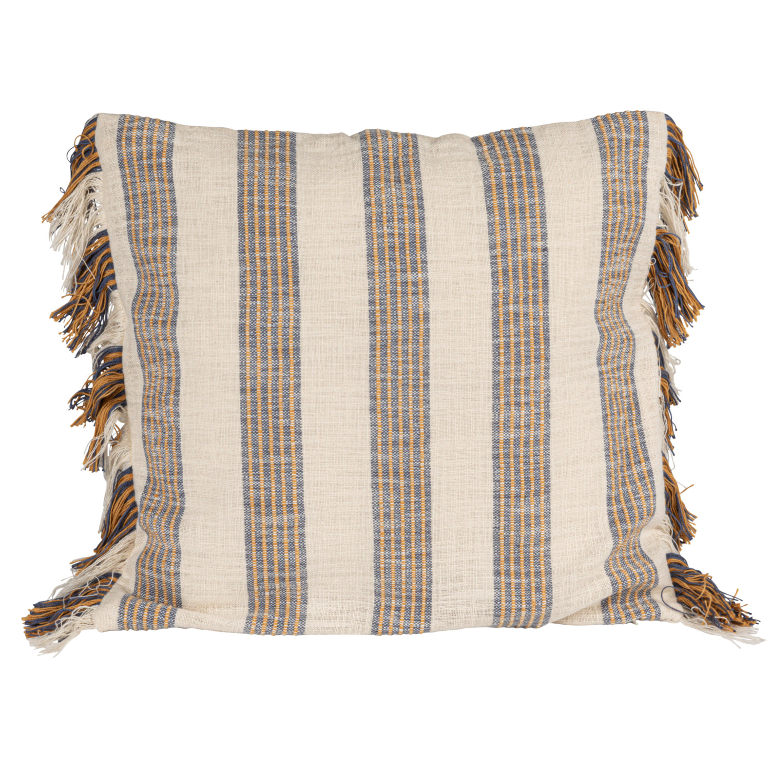 Catalog Name: 20" Square Woven Cotton Striped Pillow w/ Fringe, Natural, Blue & Yellow