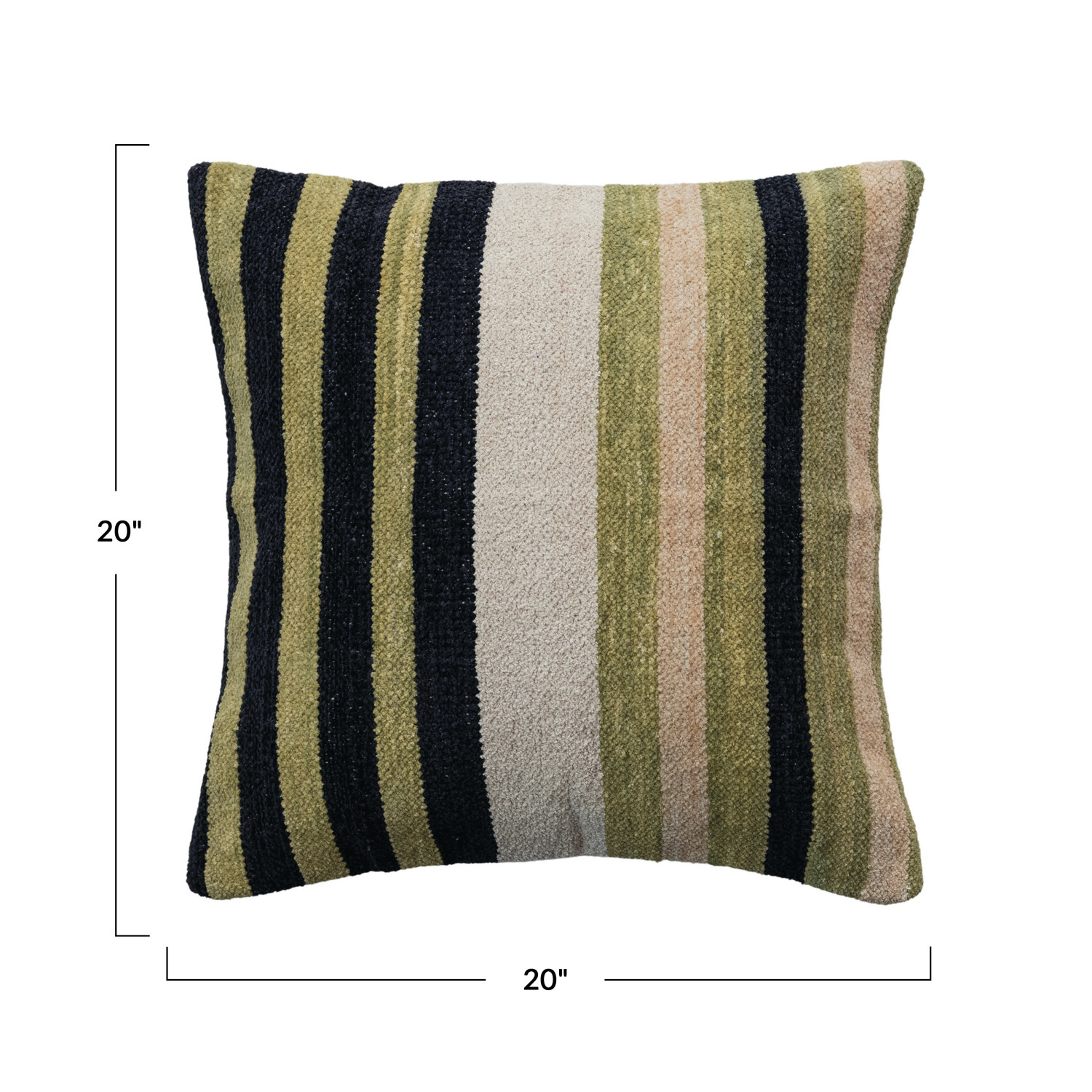 Catalog Name: 20" Square Woven Cotton Blend Chenille Pillow w/ Stripes & Cotton Back, Multi Color