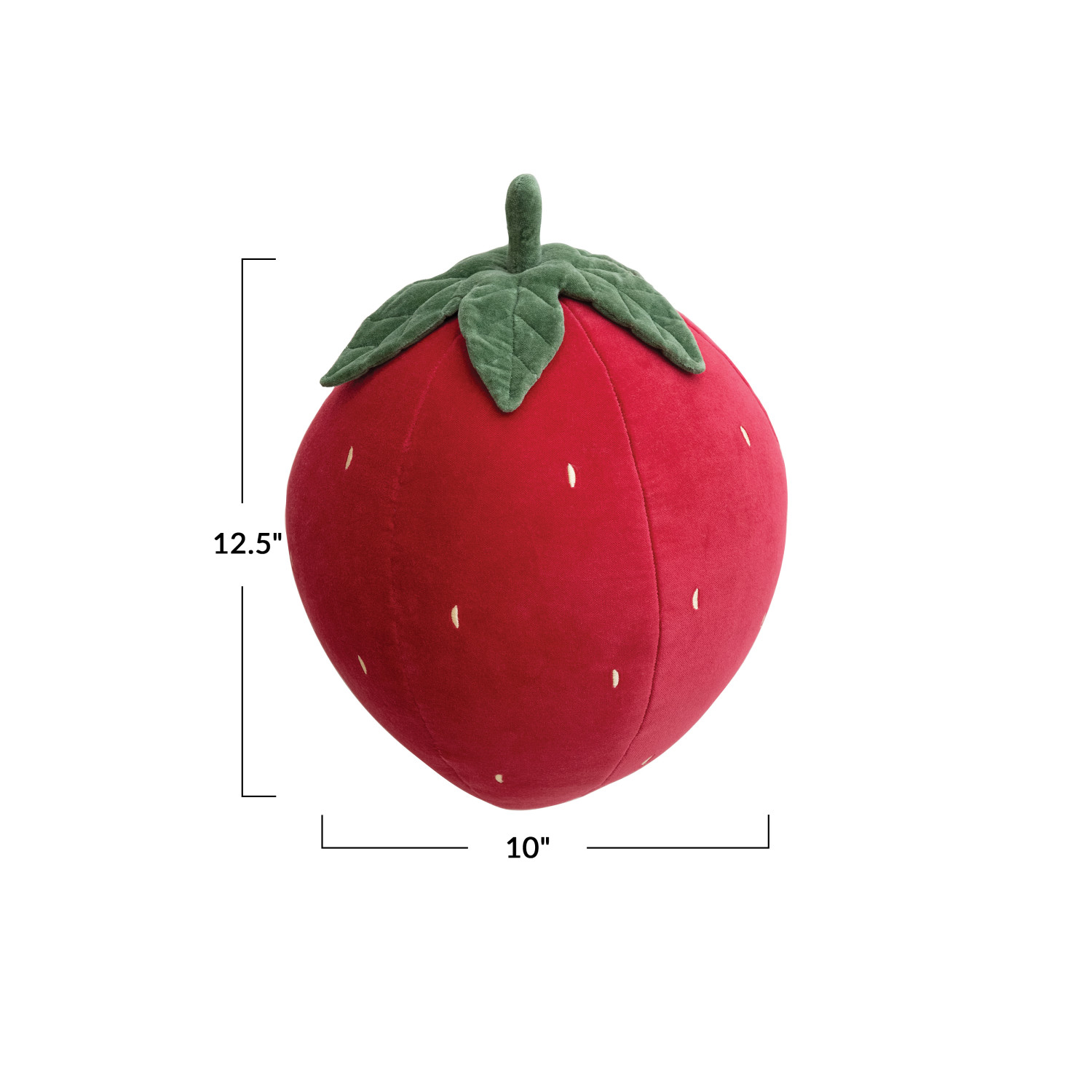 Catalog Name: 12-1/2"L x 10"W Cotton Velvet Strawberry Shaped Pillow w/ Embroidery, Red, Green & Yellow