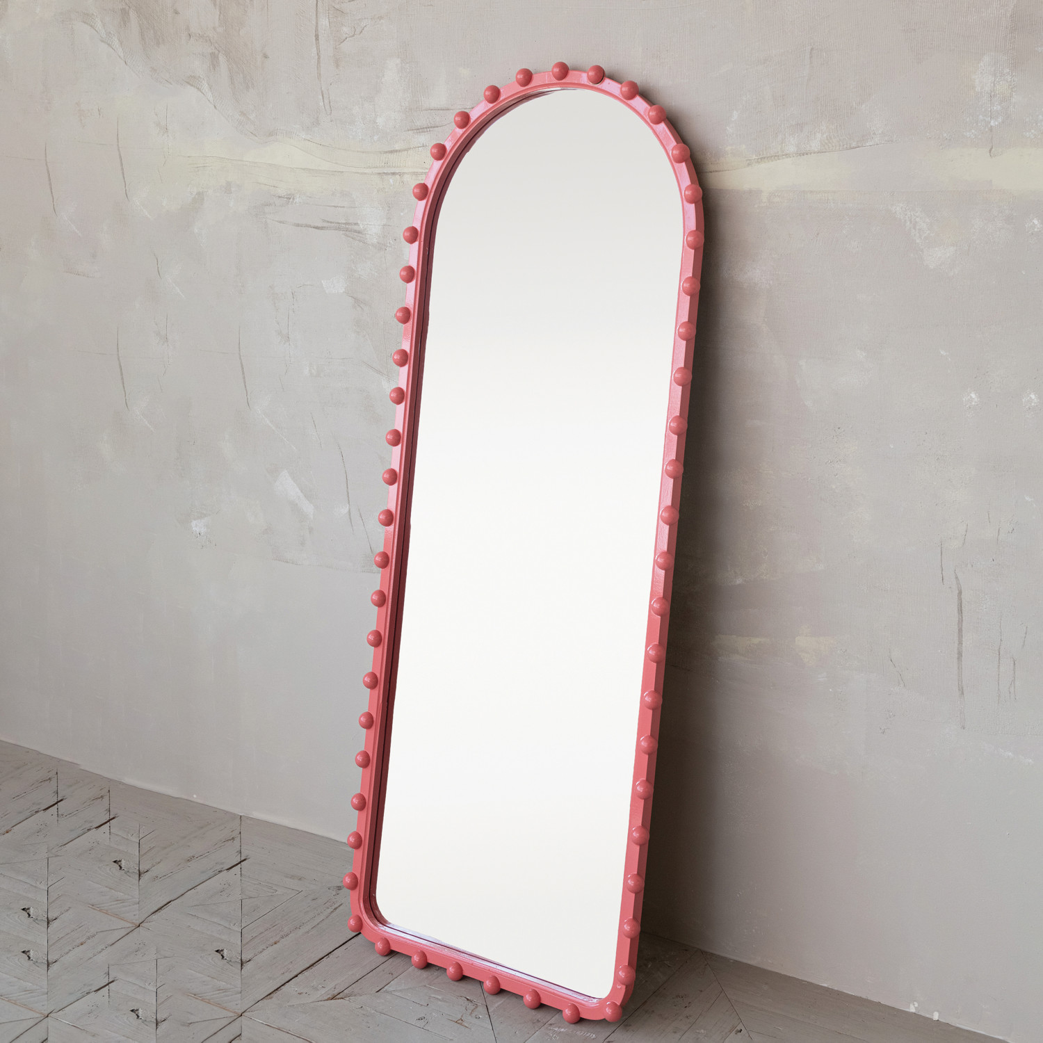 Wood Ball Framed Arched Wall Mirror, Pink